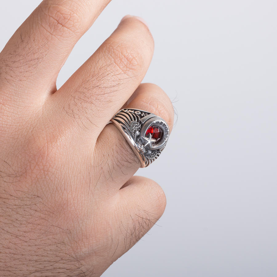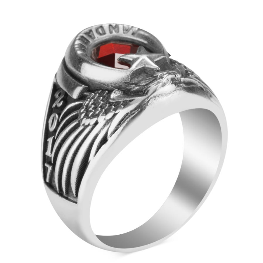 Toplumun düzeni ve güvenliği için canla başla çalışan değerli polis özel harekatçılara özel... Mesleğinizin nişanesini parmağınızda taşımanız için tasarladığımız bu Anı yüzüğüne daha yakından bakın! 92 ayar yarı değerli gümüş madeninden üretilen bu aksesuarda sade bir tasarım izlenmiş ay yıldız ve tek kartal figürüne yer verilmiştir. Yüzük işçiliğinde ısıya dayanıklı taş kullanılarak yüzük yanlarına "PÖH" ve mezuniyet yılı olan "2017" tarihi işlenmiştir. Siz de hemen Anı Yüzük'e gelerek kendi döneminize özel yüzük tasarlatabilir, ömür boyu garanti imkanıyla şık bir aksesuarın sahibi olabilirsiniz.