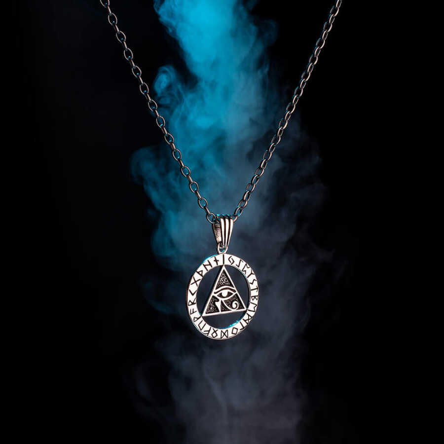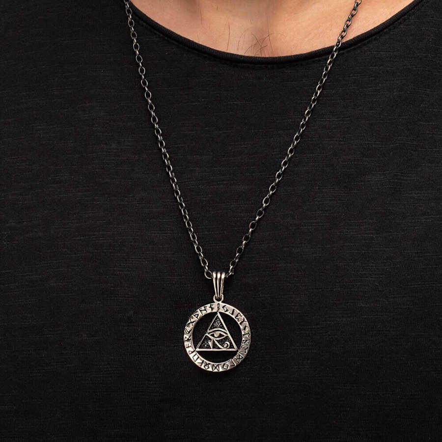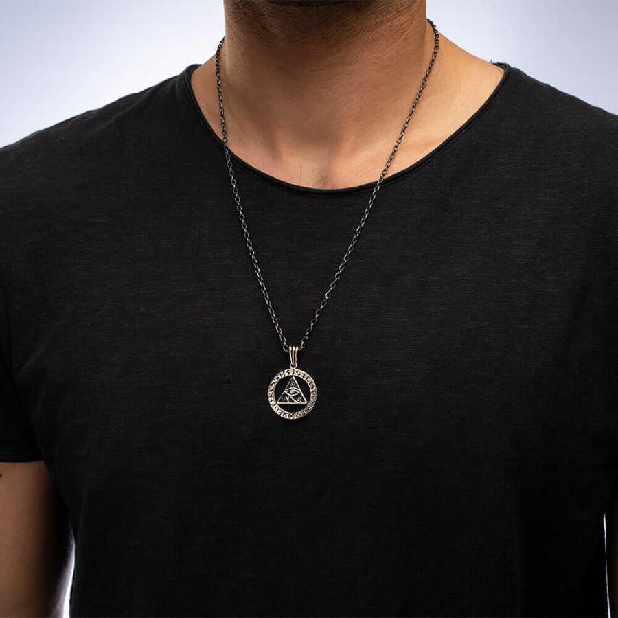925 Ayar Gümüş Antik Mısır Horus'un Gözü Erkek Kolye Zincirli Model2