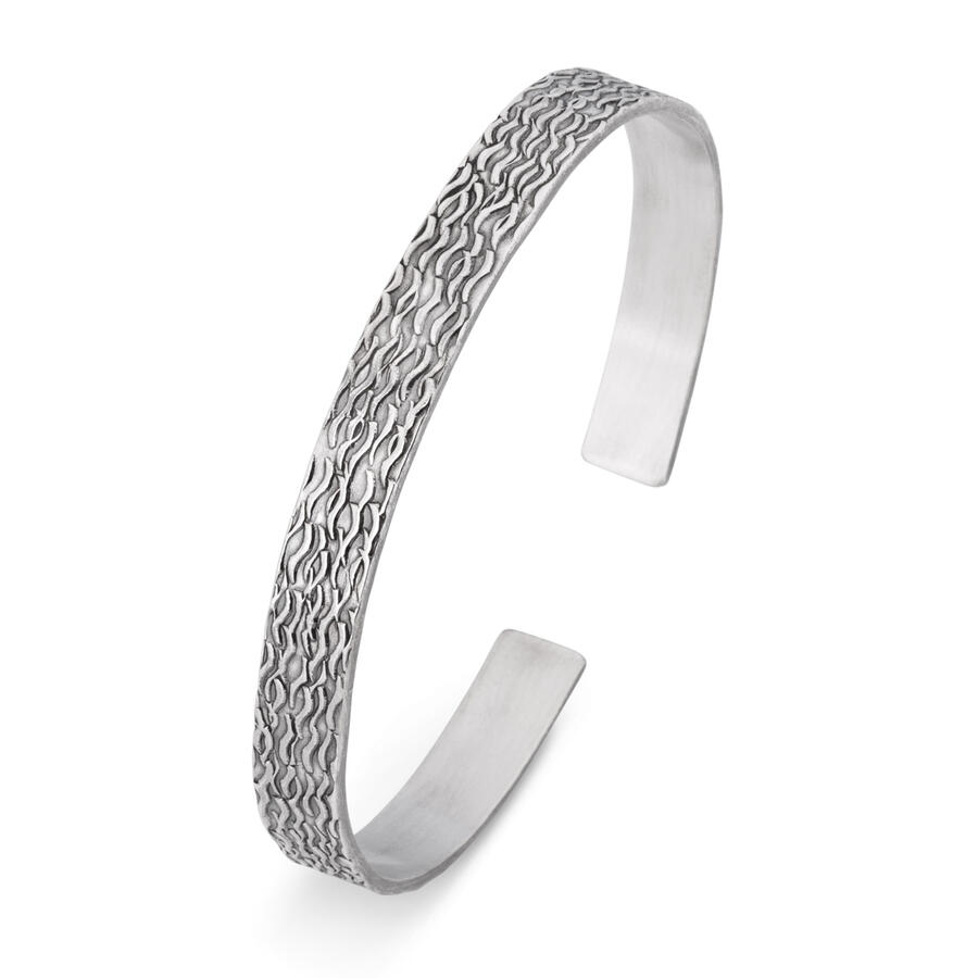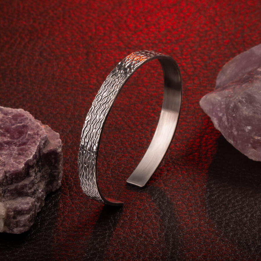 925 Ayar Gümüş Erkek Alev Desen Kelepçe Bileklik