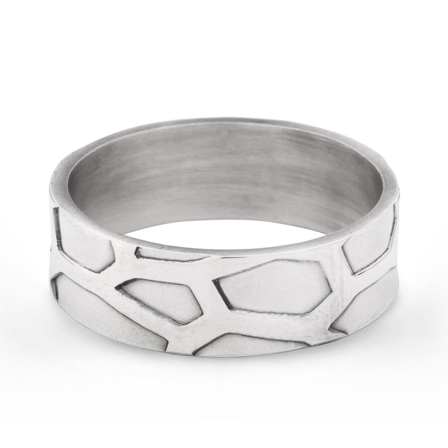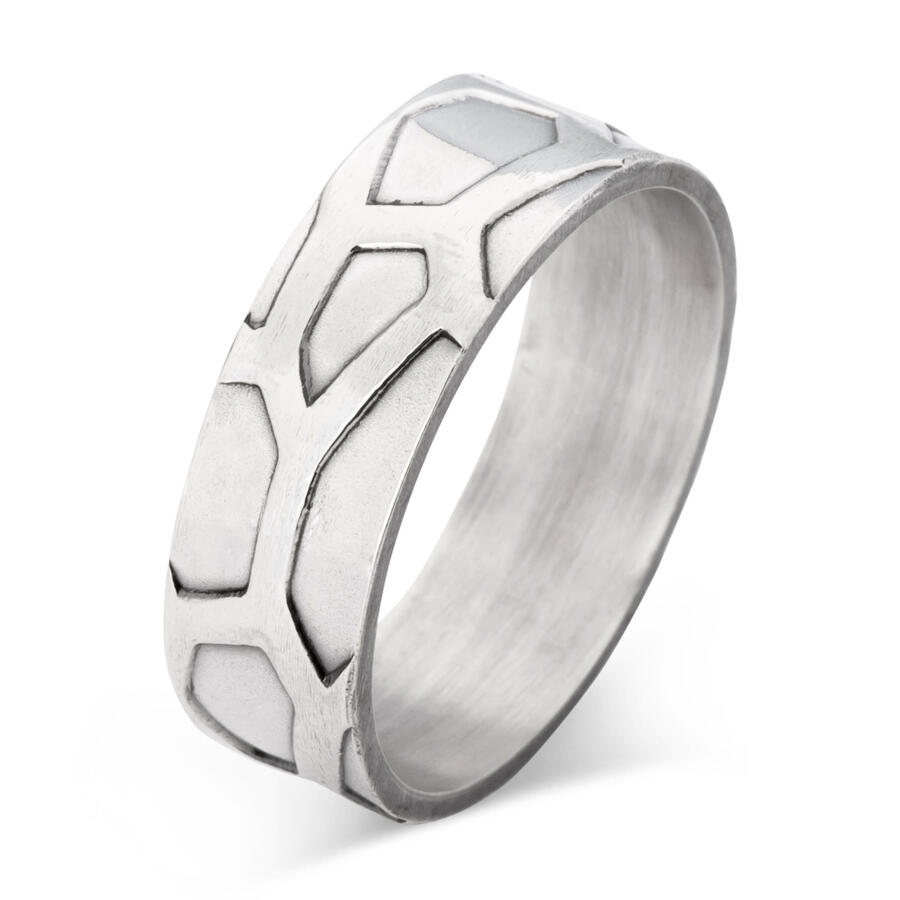 925 Ayar Gümüş Erkek Blok Desen Tek Alyans Yüzük