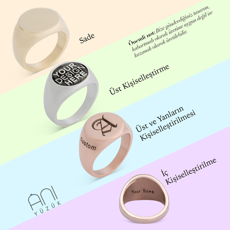 Yuvarlak Tasarım Sade Erkek Yüzük 925 Ayar Gümüş Kişiye Özel Harfli