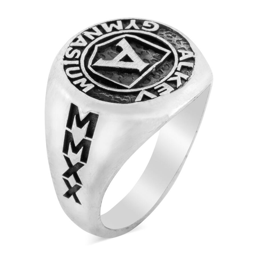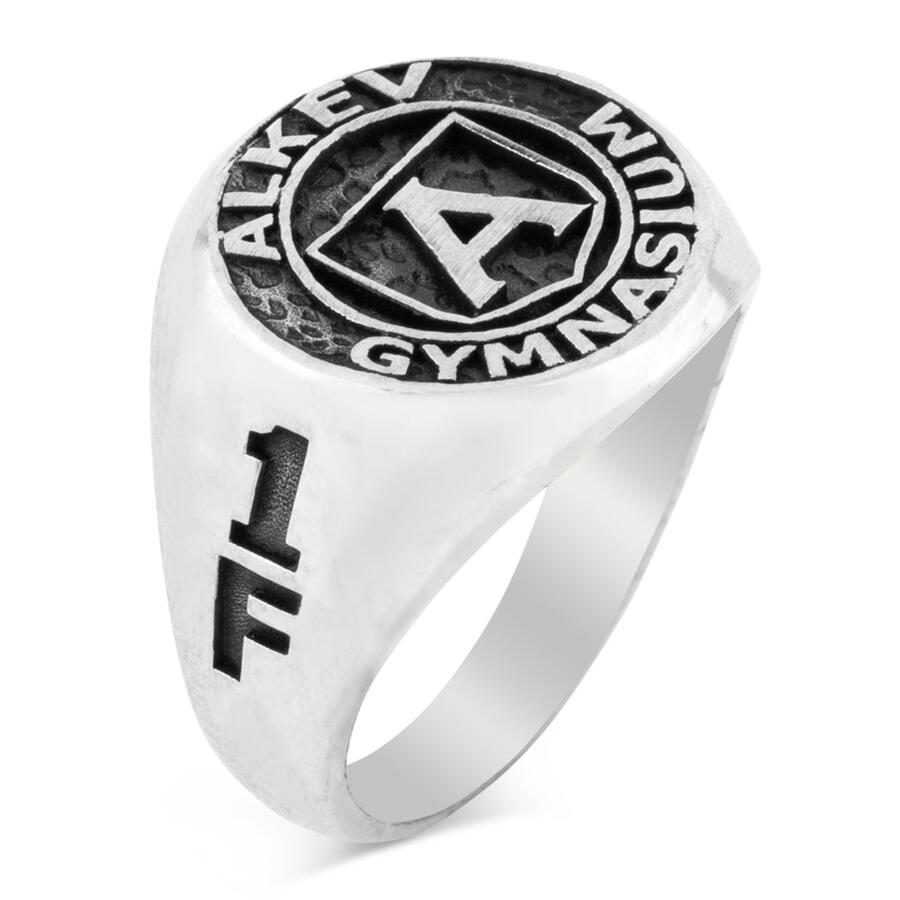 Yüzük üzerine "Alkev Gymnasium" ve "A" harfi yazılmıştır.