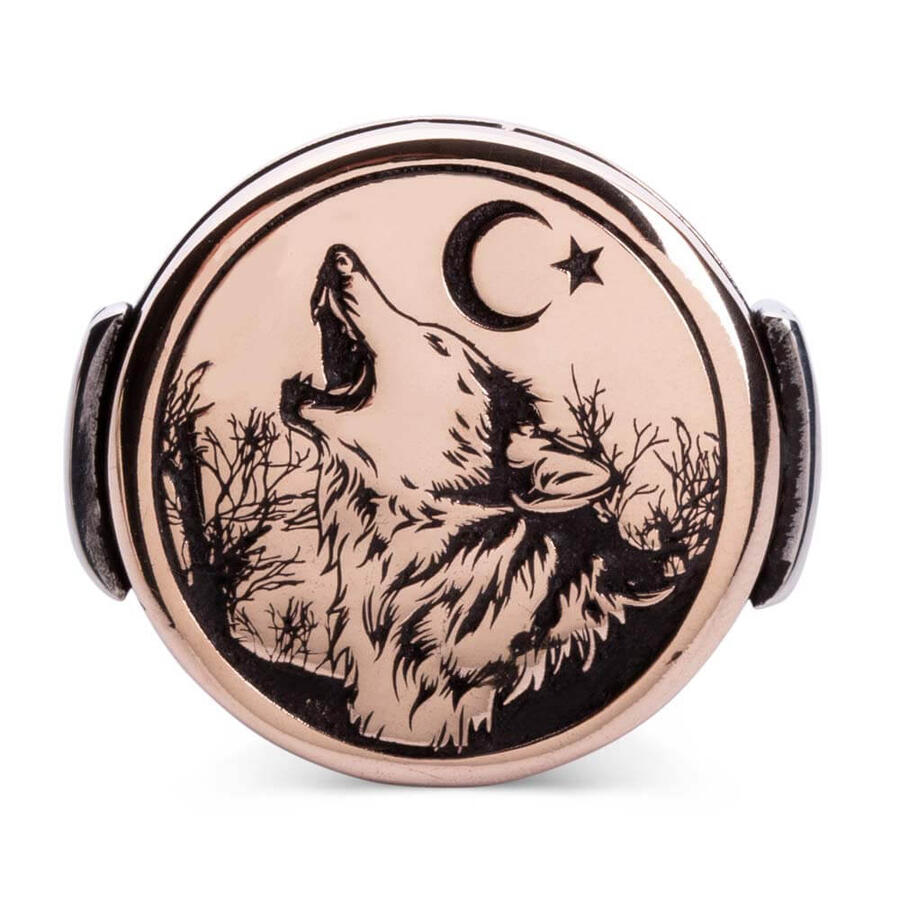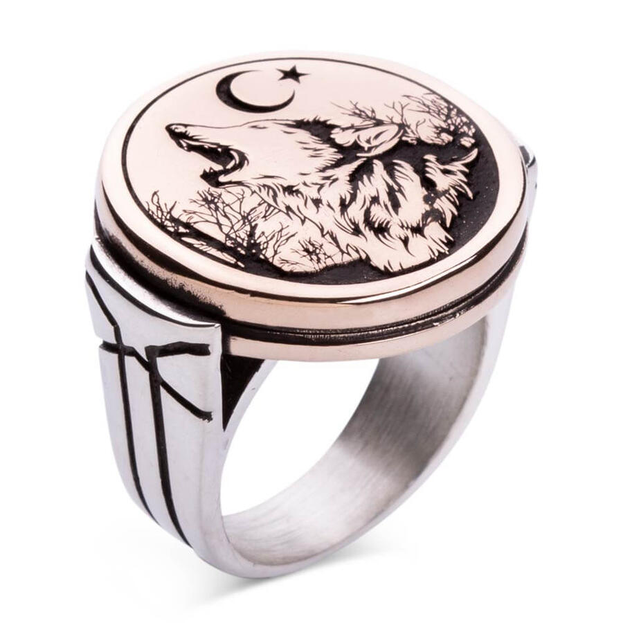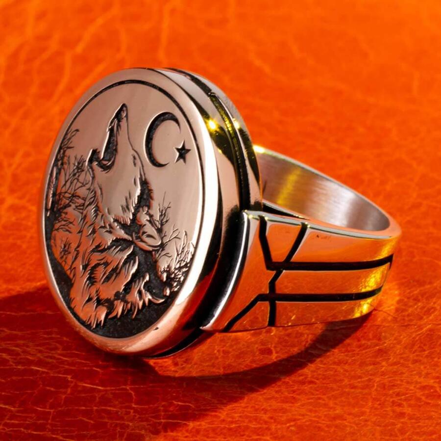 Yüzük üzerine ay yıldız ve bozkurt figürü lazer tekniği ile işlenmiştir.