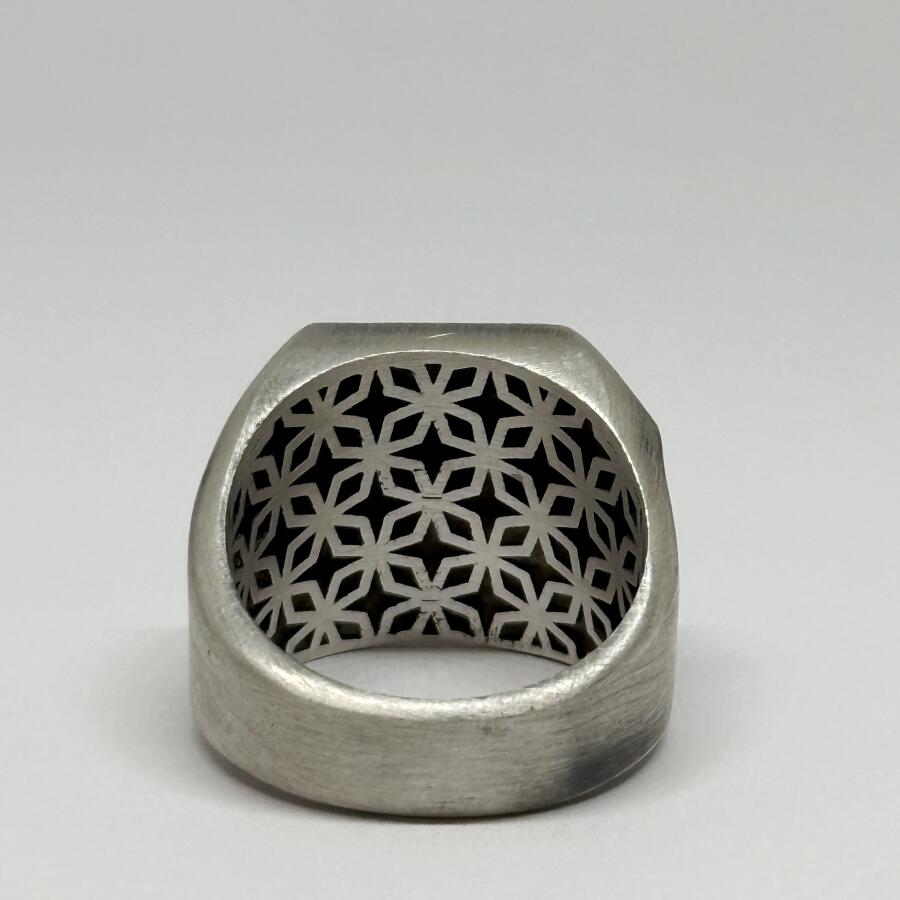 Black Onyx Stone Silver Crescent and Star Ring with Flags Product Features