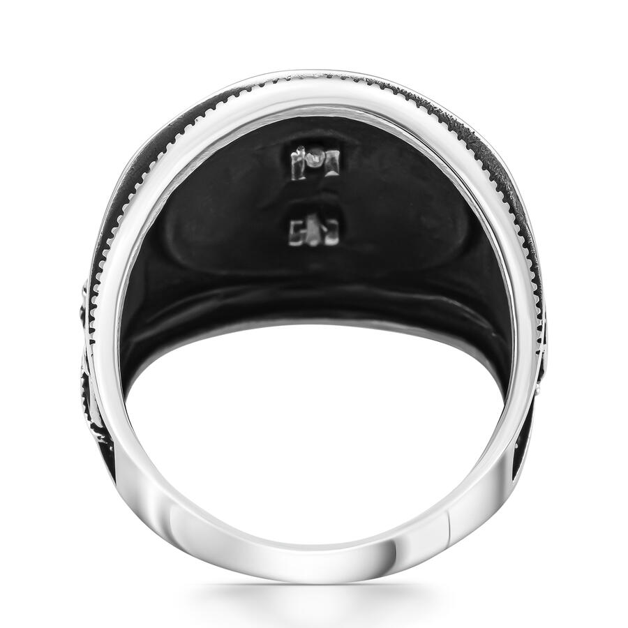 Black Onyx Stone Silver Crescent and Star Ring with Flags
