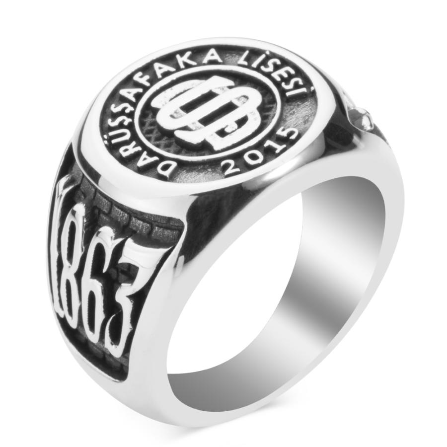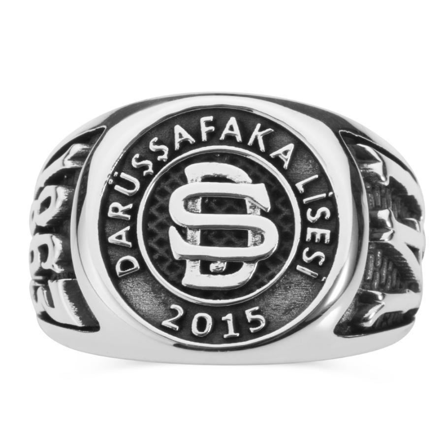 Darüşşafaka, İstanbul'da kuruluşu 1863 yılına dayanan parasız, yatılı, karma öğretim kurumudur. Türkiye’nin eğitim alanındaki ilk sivil toplum kuruluşu olarak Darüşşafaka Cemiyeti tarafından faaliyete geçmiştir. Darüşşafaka Lisesi 2015 yılı mezunları için tasarlanan sade tasarım bu aksesuara daha yakından bakın! 925 ayar gümüşten üretilen bu mezuniyet yüzüğünde yüzük yanlarına okulun kuruluş tarihi ve mezuniyet dönemi işlenmiştir. Ömür boyu bakım garantimiz altında olan bu aksesuara siz de hemen ücretsiz kargo imkanı ile sahip olabilirsiniz.