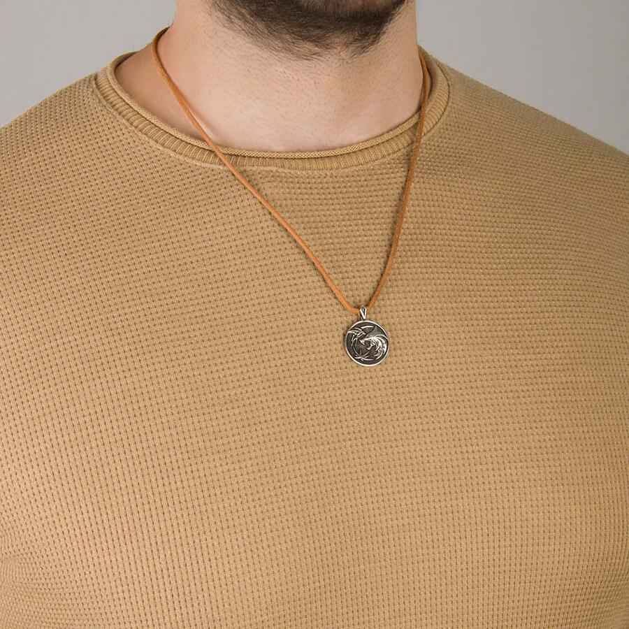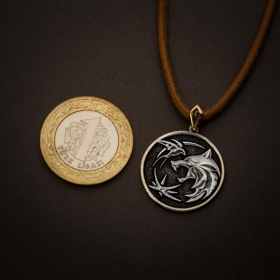Erkek 925 Ayar Gümüş Kurt Witcher Kolye İpli Model