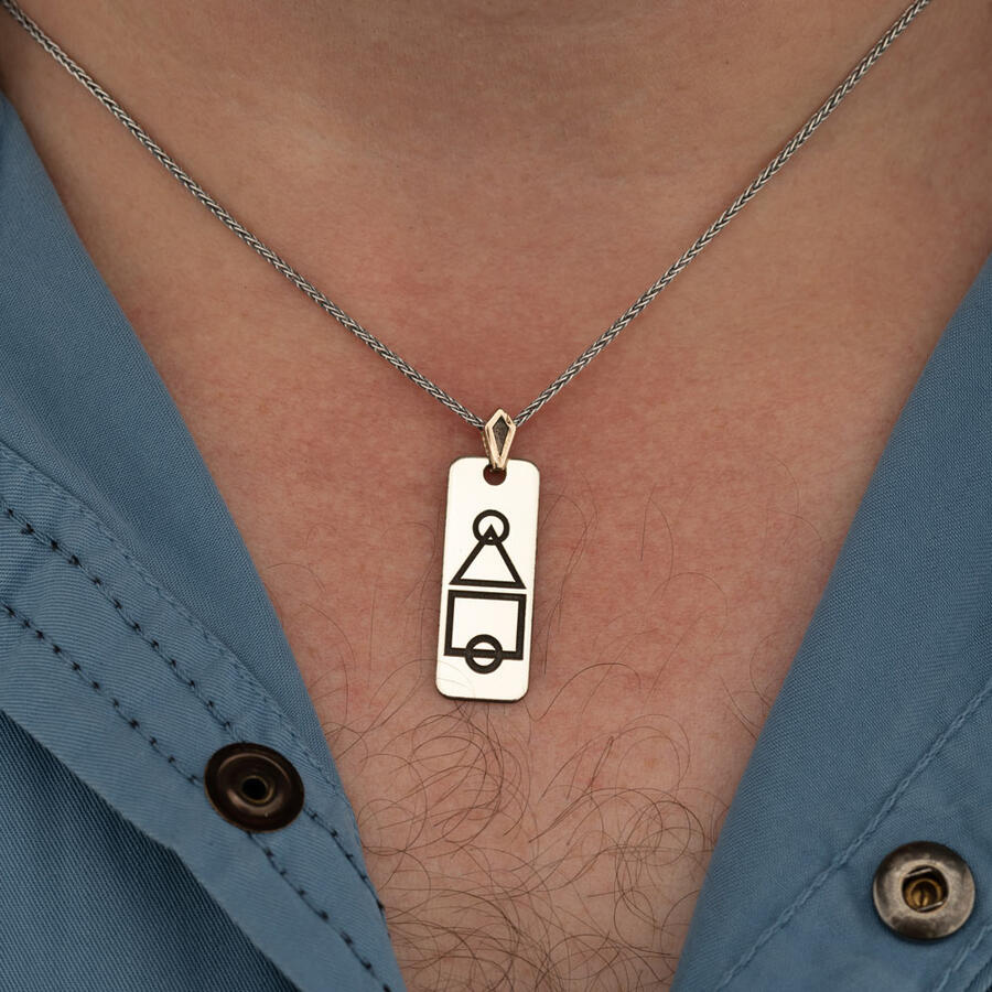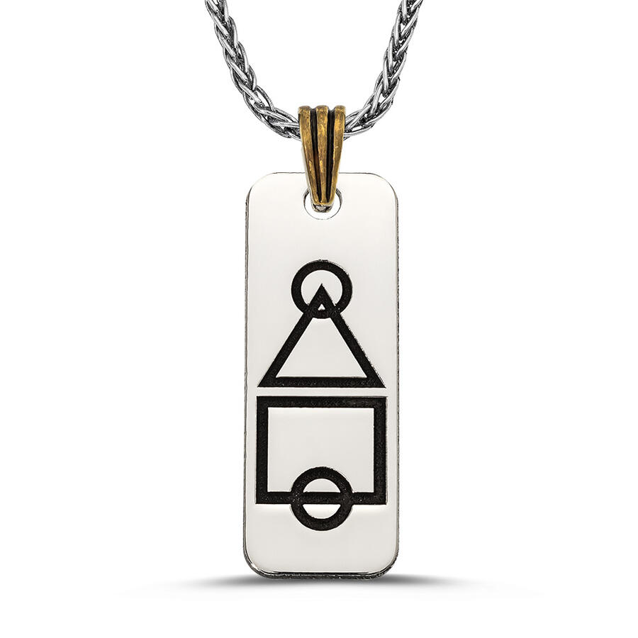 Gümüş-Siyah Squid Game Erkek Künye Kolye Zincirli Model1