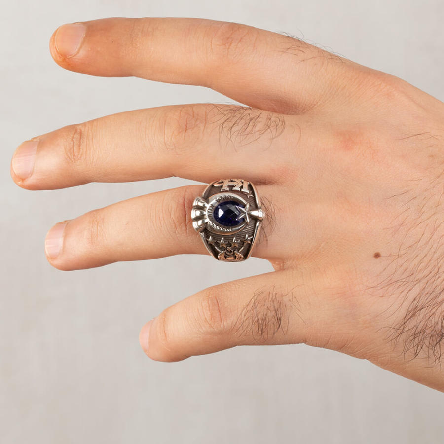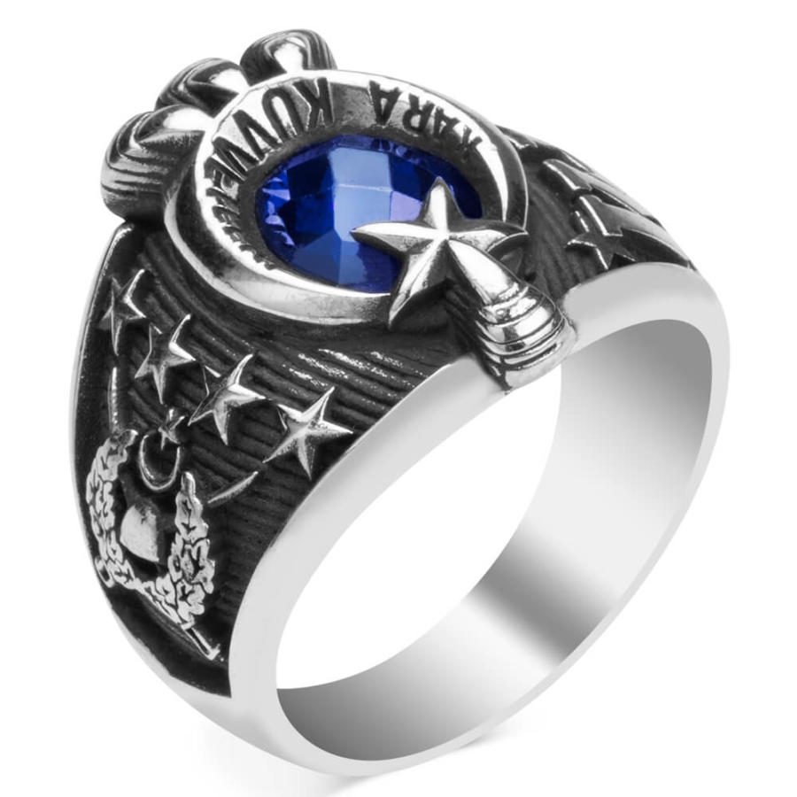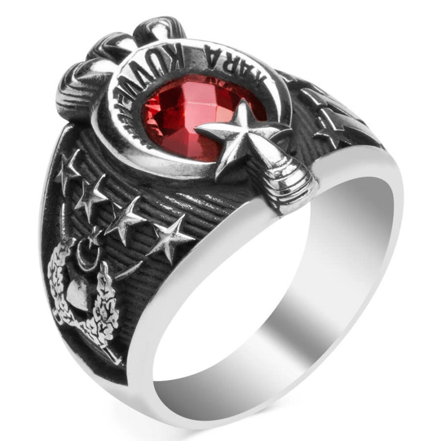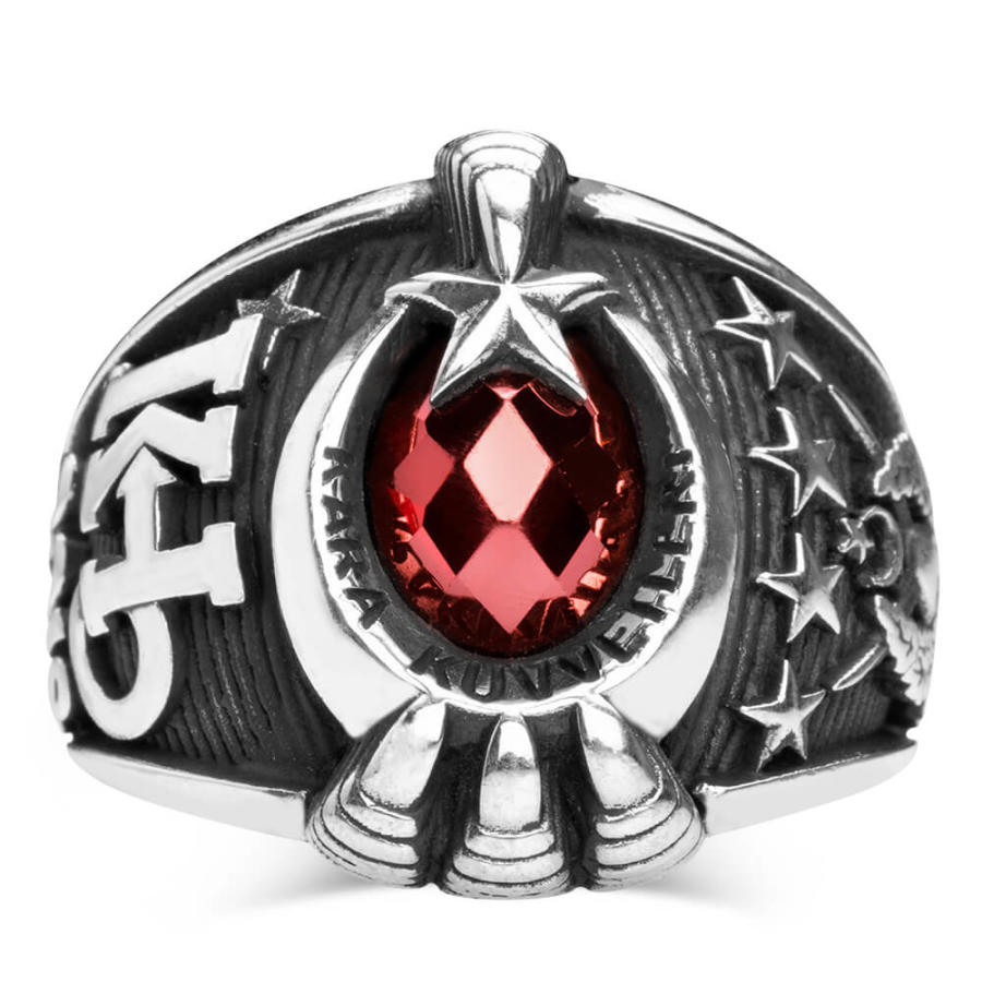 Kara Harp Okulu Öğrenci ve mezunları için tasarlanan ömür boyu garantili işçiliğinde zirkon taş kullanılan 925 ayar gümüş hatıra yüzüğü. Yüzük üzeri şanlı bayrağımızın sembolü olan ay yıldız formuyla tasarlanmıştır. Ay yıldızın etrafında pençe figürleri yer almaktadır. Yüzük yanlarında 2018 figürü ve Kara Harp Okulu arması yer almaktadır.