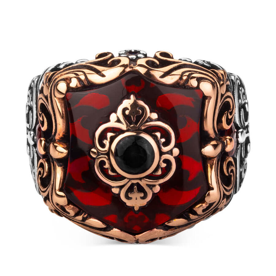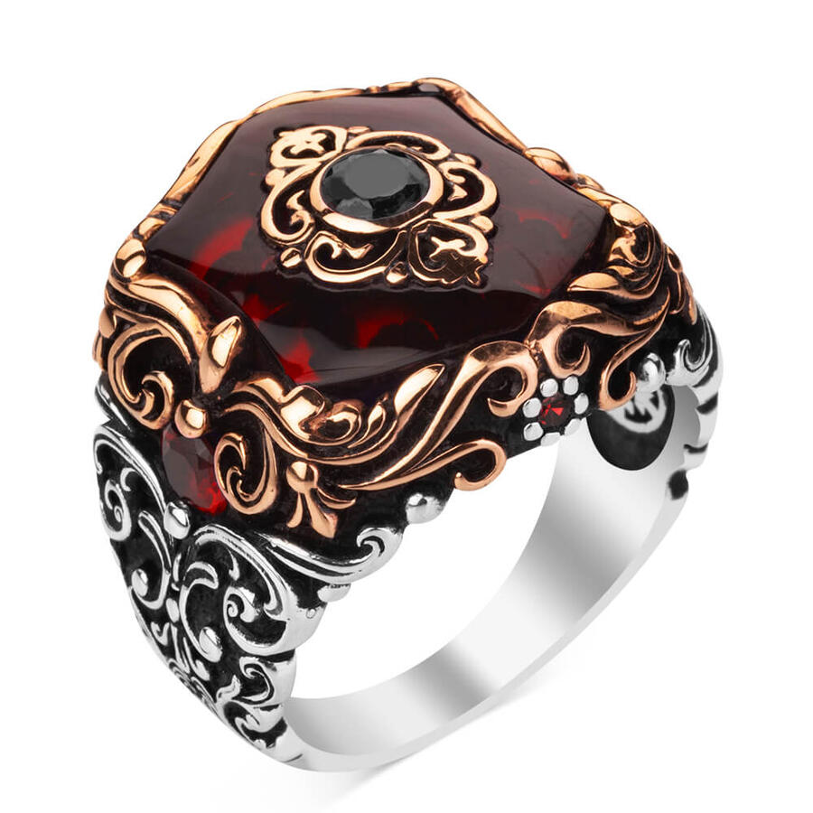 Karo Model Kırmızı Taşlı Gümüş Erkek Yüzük Ürün Özellikleri