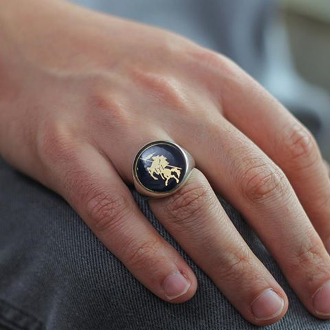 - Mavi yüzük minesi üzerine Kayı Boyu Sancağı motifi işlenmiştir.