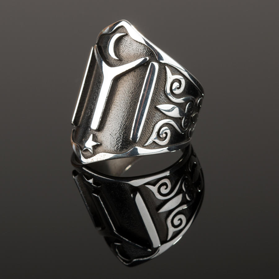 هناك مطرزة العزر المتماثلة على جانبي الخاتم