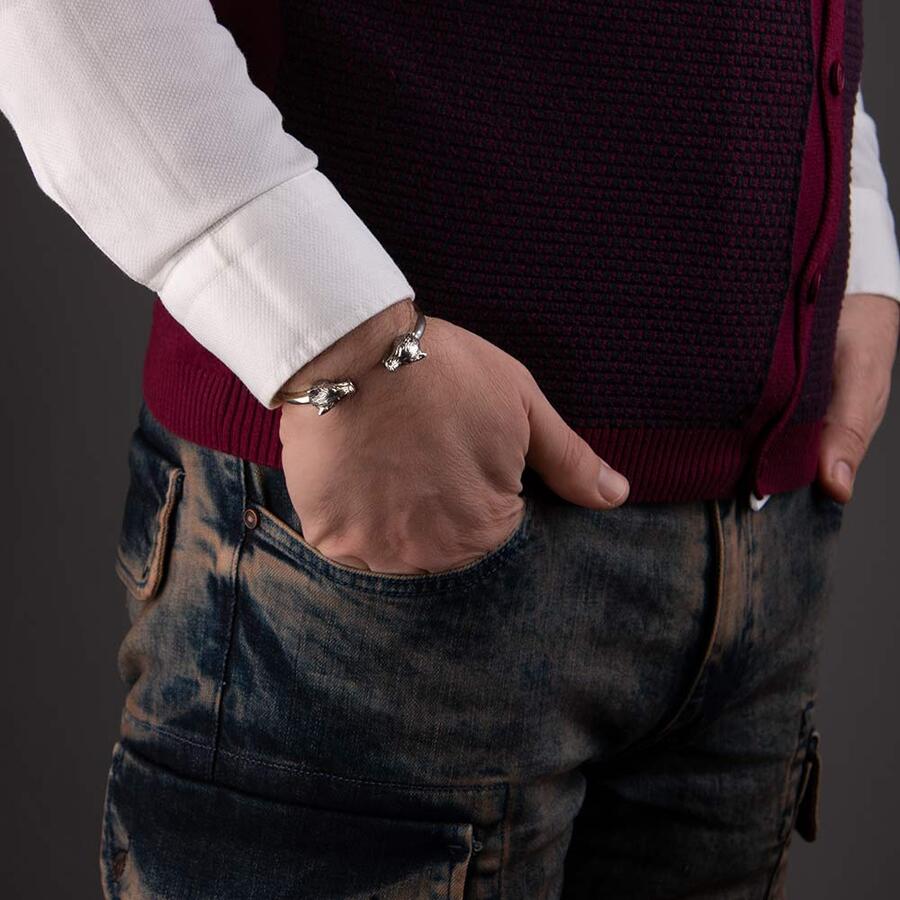 Kurt Kafası Figürlü 925 Ayar Gümüş Erkek Bileklik