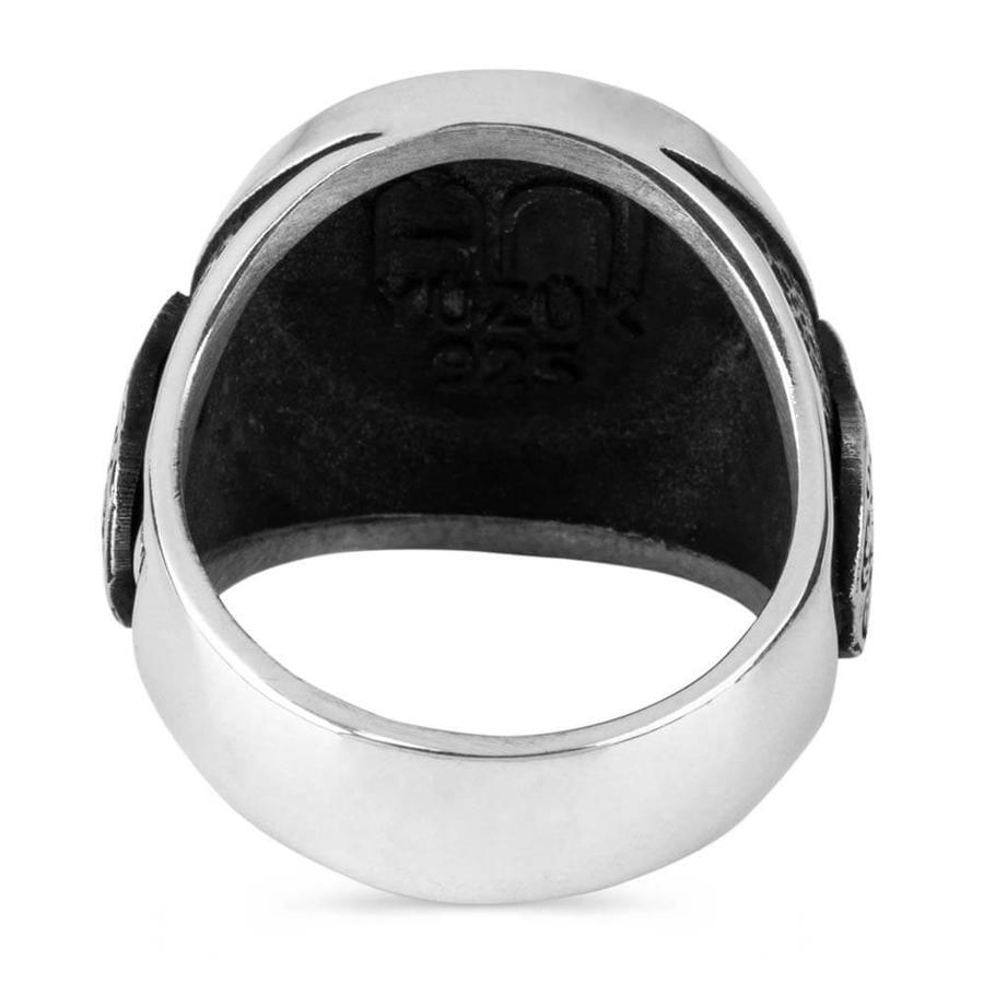 Kılıç Detaylı Siyah Oniks Taşlı Gümüş Yüzük