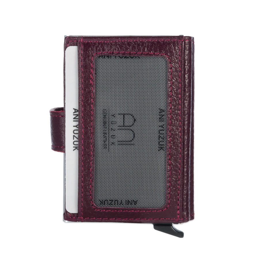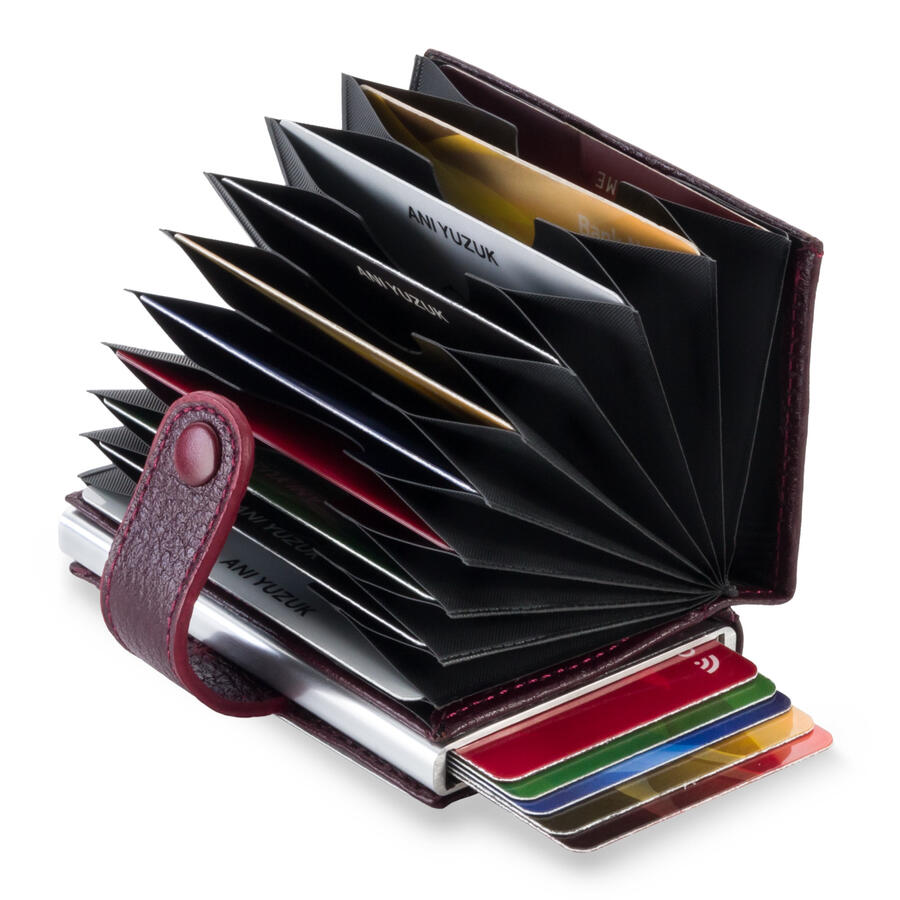 Otomatik Mekanizmalı Ekstra Akordiyon Kartlıklı Hakiki Deri Cüzdan Bordo