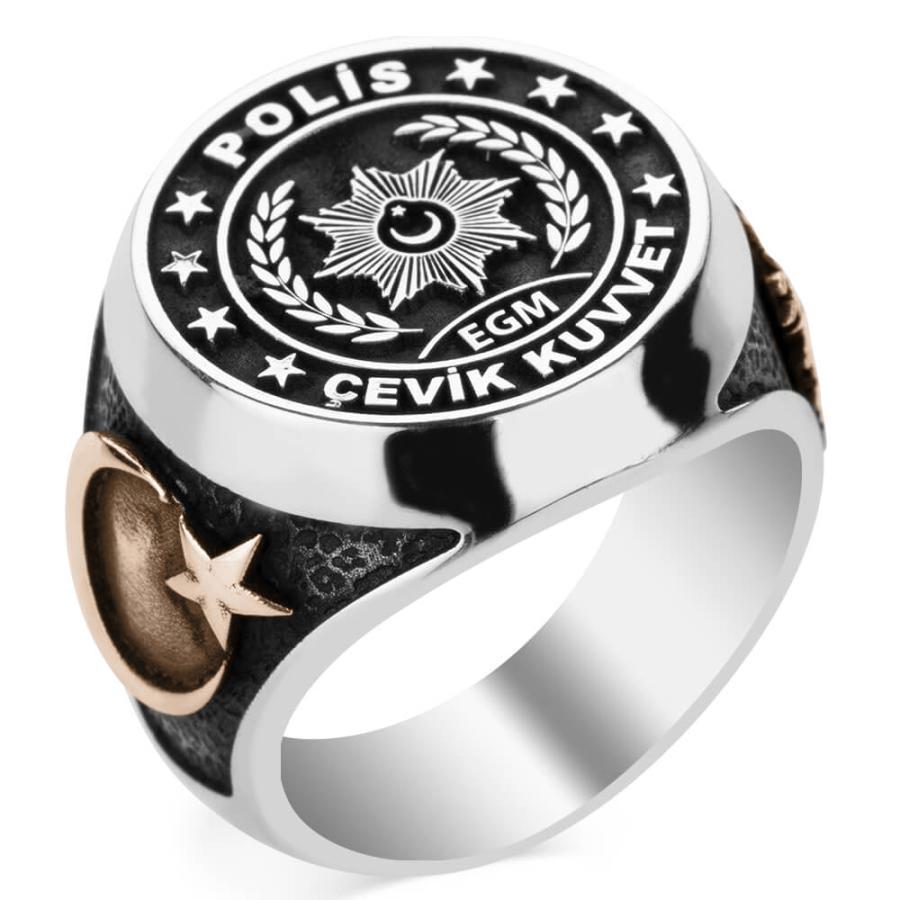 Emniyet Teşkilatı'na bağlı olarak görev yapan Çevik Kuvvet polislerimize özel olarak tasarlanan bu Anı yüzüğüne göz atın! Bu aksesuar ile mesleğinizin nişanesini hayatınızın her anında parmağınızda taşıyacaksınız! 925 ayar gümüş kullanılarak üretilen bu aksesuarda yüzük yanlarında Ay Yıldız ve Osmanlı Arması figürlerine yer verilmiştir. Siz de hemen sipariş verin ömür boyu garantili şık bir aksesuarın sahibi olun.