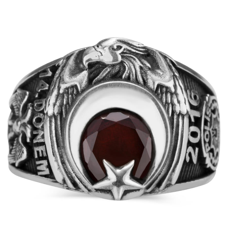 Kahraman polislerimize özel mesleklerinin gururunu her daim yaşamaları için tasarladığımız Anı yüzükleri artık çok daha özel! Kendi döneminize özel tasarlatabileceğiniz Anı Yüzükleri 'Ömür boyu garanti' imkanıyla karşınızda. Polis teşkilatı 14 Dönem 2016 devresi için hazırladığımız bu 925 ayar gümüş yüzükte hakimiyet sembolü kartal başı kullanılarak yüzük yanlarına Polis Teşkilatı arması ve Selçuklu Kartalı motifi yerleştirilmiştir. Siz de hemen sipariş vererek kendi döneminize ait şık bir yüzük tasarlatabilir ücretsiz kargo fırsatı ile sahip olabilirsiniz.