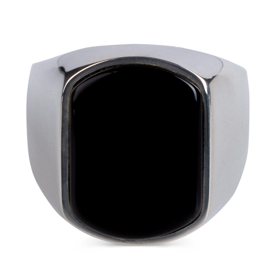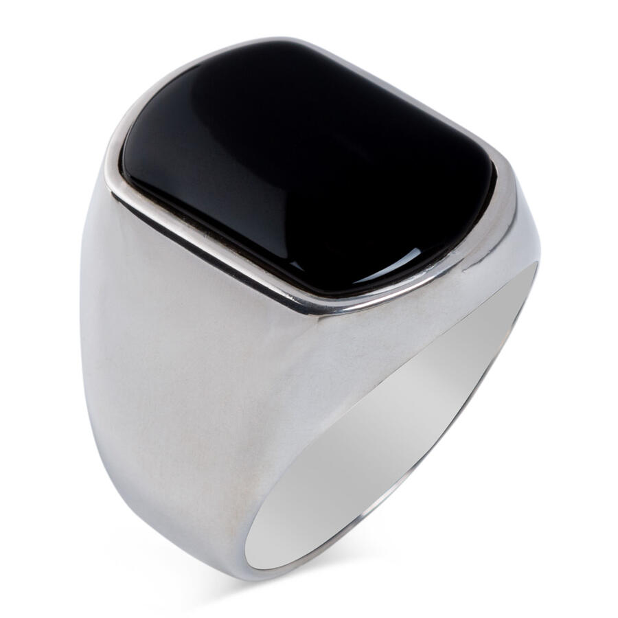 925 Ayar Gümüş Dörtgen Siyah Oniks Taşlı Erkek Yüzük