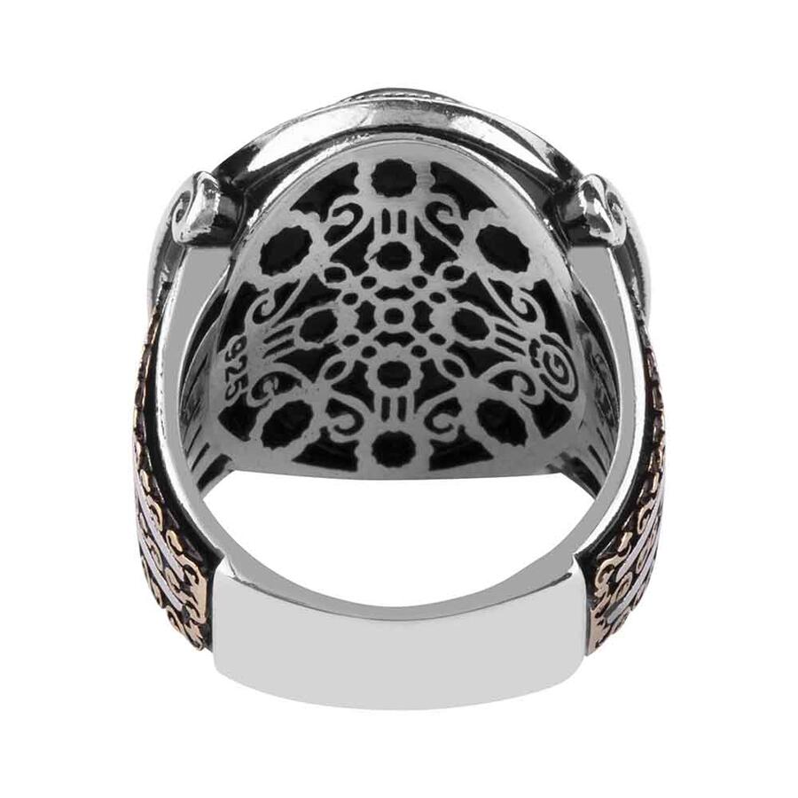 Alparslan Büyük Selçuklu Şahin Desen Yıldızlı Gümüş Erkek Yüzük
