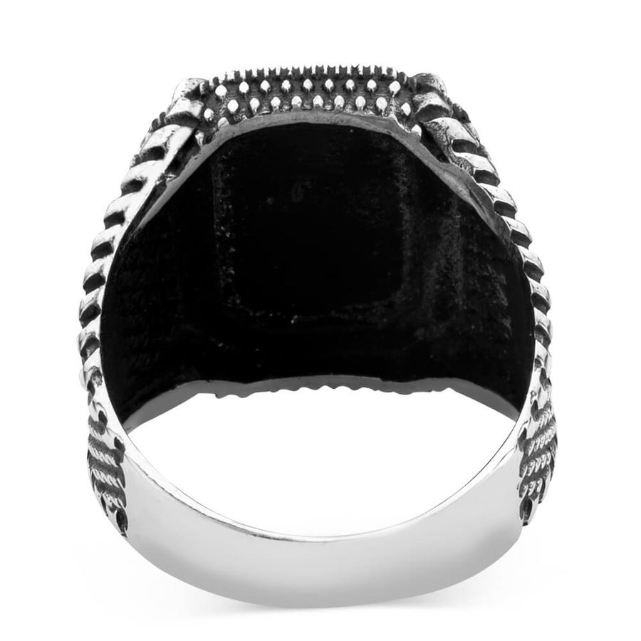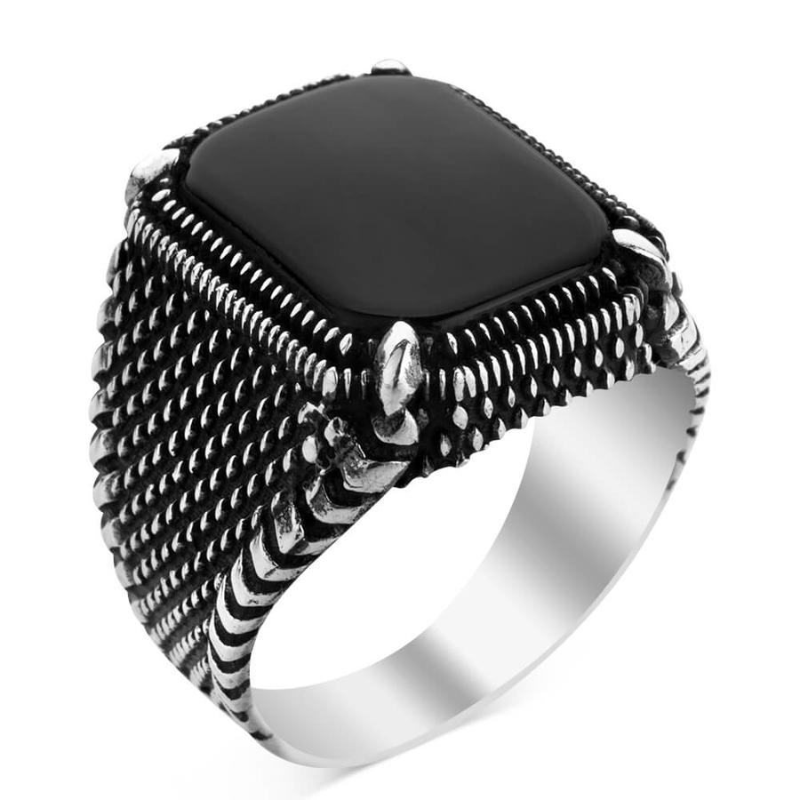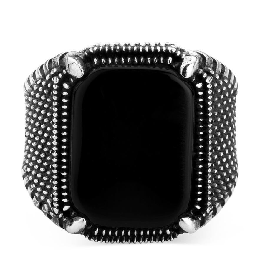 925 Ayar Gümüş Dörtgen Siyah Oniks Taşlı Erkek Yüzük