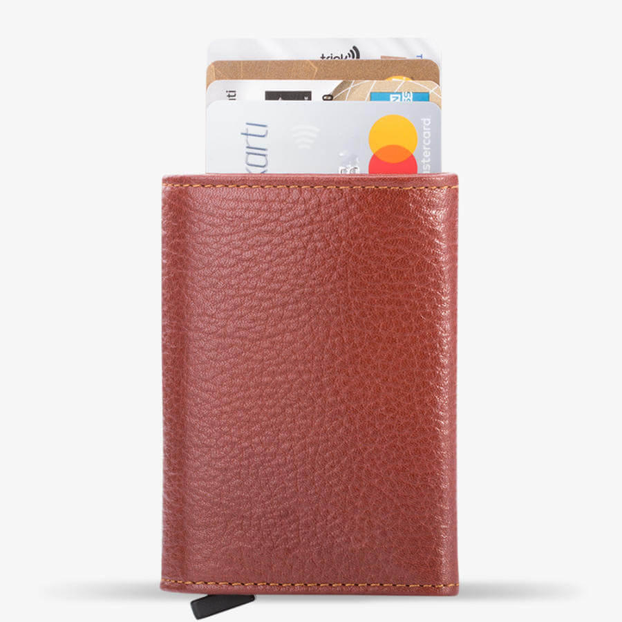 Cüzdan alırken kullanışlı olmasını ön planda tutanlar için özel olarak tasarlanan ve kartlık cüzdan modelleri arasında trend haline gelen bu küçük boy mekanizmalı kartlık ile hayat çok daha kolay! Günlük hayatta yanında çok sayıda kredi kartı taşıyan kişilere özel olarak tasarlanan bu sade tasarımlı erkek kartlık yüzde yüz hakiki deri üretimli olup unisex tasarımlanmıştır. Çelik kartlık altında bulunan pop up kilidi ile kartlarınız otomatik olarak cüzdandan çıkar, bu mekanizma sayesinde aradığınız kartı kolaylıkla bulabilirsiniz. Siz de hemen sipariş vererek bu şık kartlığın sahibi olabilirsiniz.