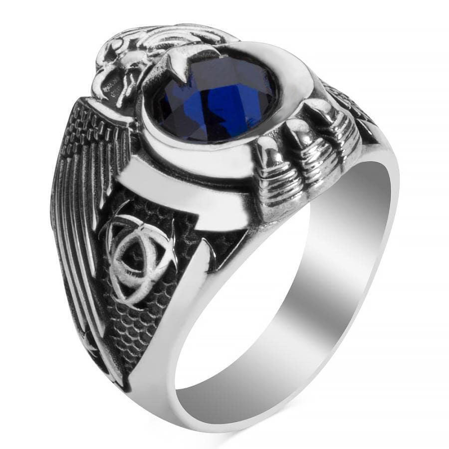 Mavi Zirkon Taş Gümüş Erkek Yüzük