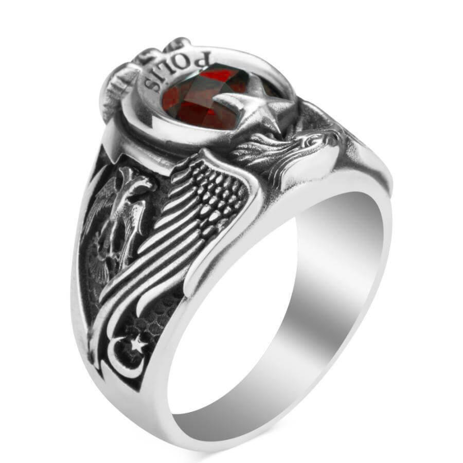 Bazı meslekler kutsaldır polislik gibi… Hiç tanımadığınız insanlar için uğruna savaşmaktır hiç düşünmeden… Anı Yüzük, mesleğinizdeki her anı sizler için ölümsüzleştiriyor. Polis olmaya karar verdiğiniz başlangıç anından emekli olduğunuz ana kadar ürettiği yüzük ve kurumsal aksesuarlarla sizin yanınızda! Kusursuz tasarım mükemmel işçilik ilkesiyle 925 gümüşten üretilen bu yüzükte savaşçı ruhu ve mücadeleyi temsil eden tek kartal başı tasarımıyla oluşturulmuş yüzük yanlarında Polis arması ve Selçuklu kartalı'na yer verilmiştir. Ömür boyu garantili bu devre yüzüğü ile mesleğinizden bir izi parmağınızda taşıyacaksınız.
