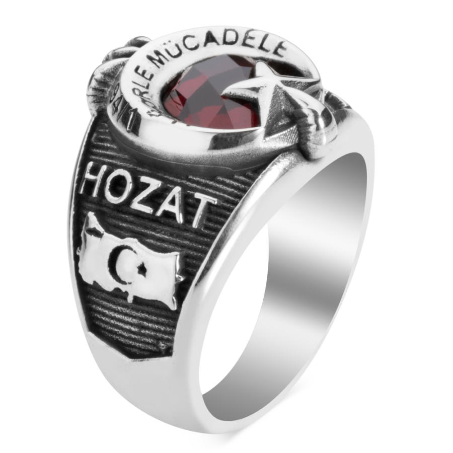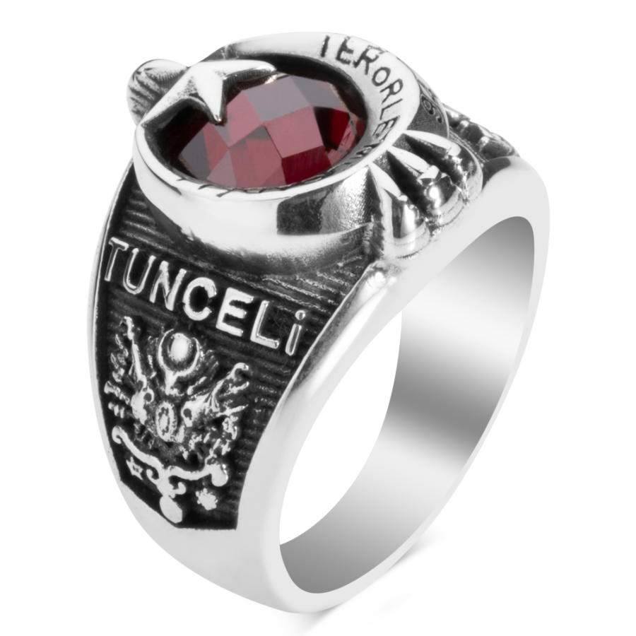 Tunceli Hozat Terörle Mücadele ekipleri için tasarlanan 925 ayar gümüş kırmızı zirkon taşlı pençeli Terörle Mücadele yüzüğüne daha yakından bakın. Mesleğinize özel şık bir nişanenin sahibi olmak istiyorsanız doğru adrestesiniz. Çalışma hayatınız olan askerlik yıllarınızda en özel anıları üzerinden yıllar geçse de bu aksesuar ile ölümsüzleştireceksiniz. Siz de hemen sipariş verererek, kendi devrenize özel şık bir yüzük tasarlatabilir, sahibi olabilirsiniz.