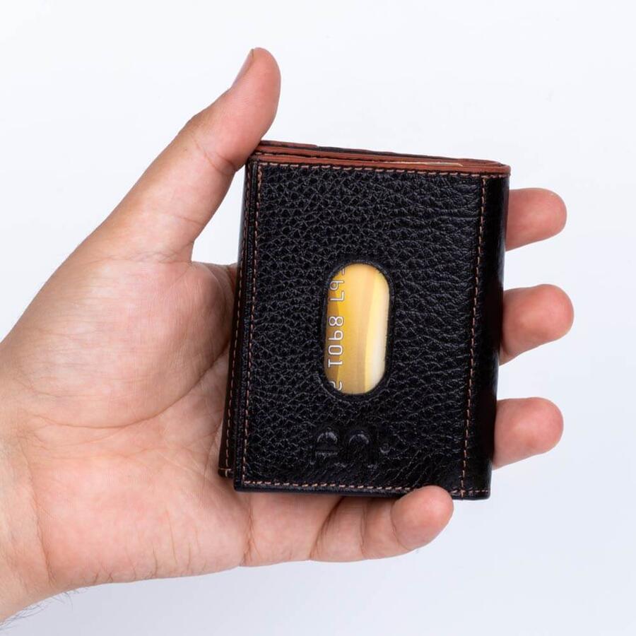 Pop-up Mechanism Accordion Card Holder Wallet Genuine Leather Black