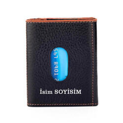 Personalized Black Double Sided Leather Mens Cardholder Wallet