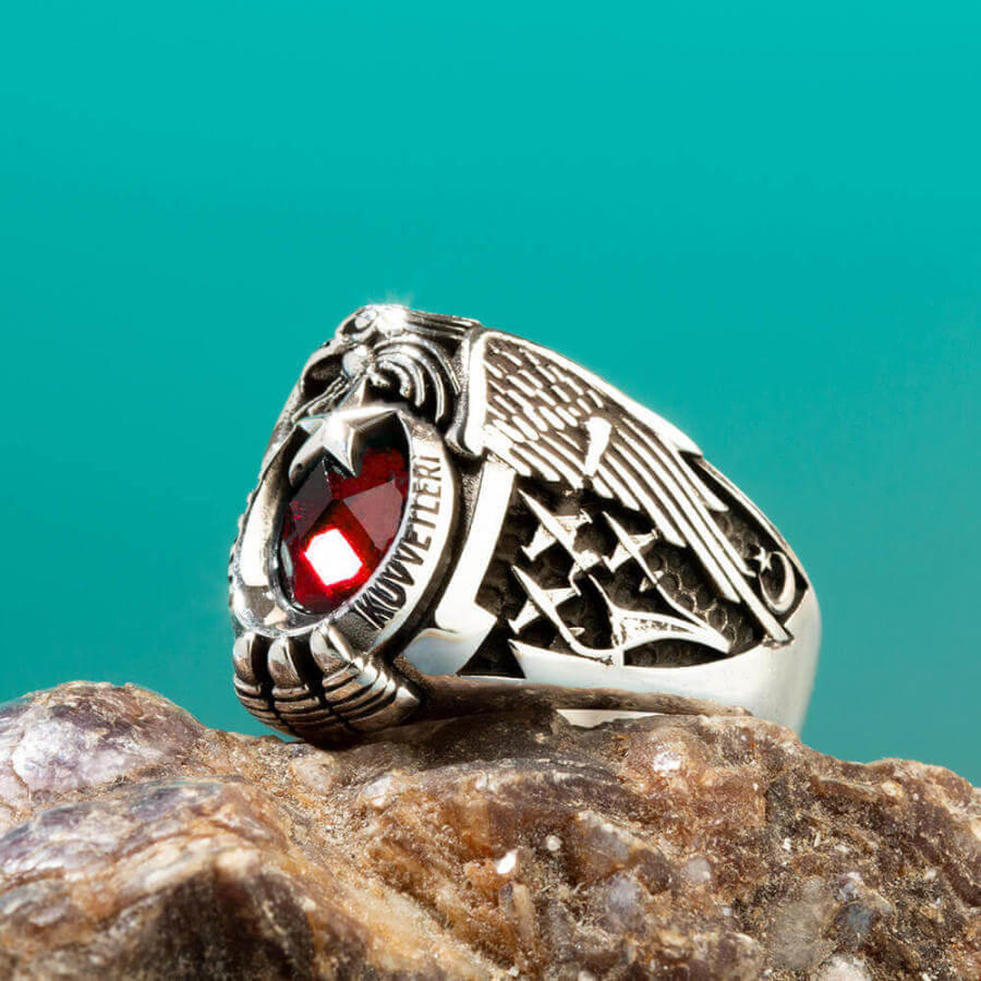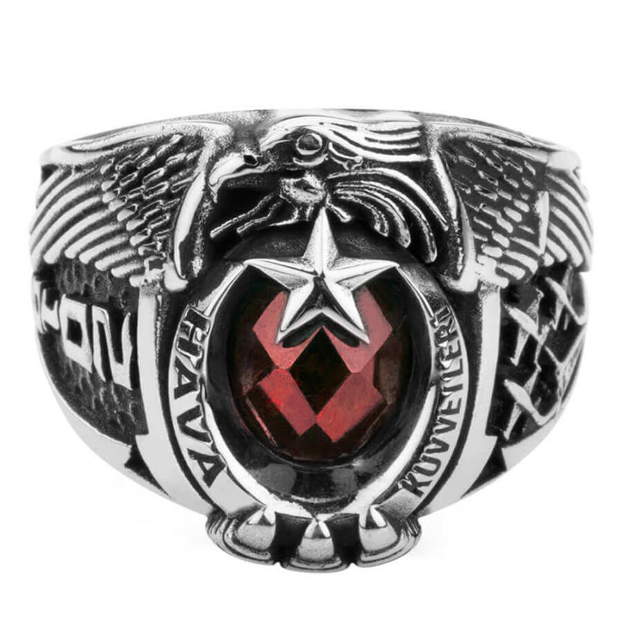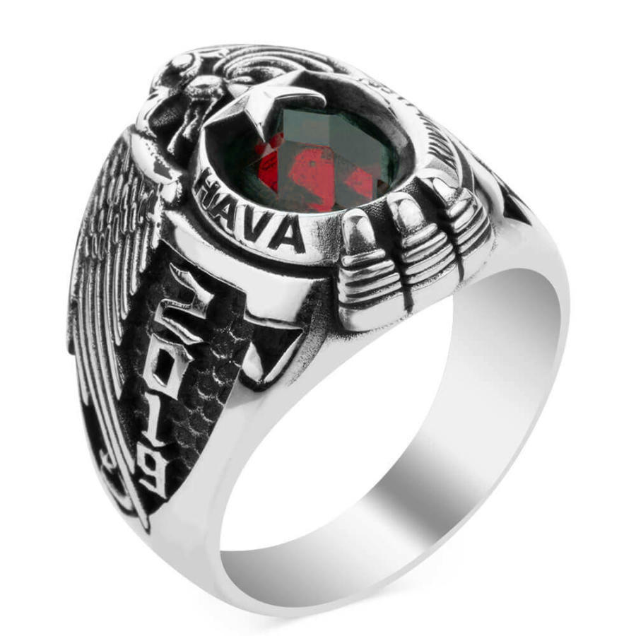 Yüzük yanlarında devre yılı ve uçak figürlerine yer verilmiştir. Yüzük hilali a dışıise lazer yöntemiyle "Hava Kuvvetleri" yazısı işlenmiştir. Siz de hemen sipariş vererek bu özel tasarım askeri yüzüğün sahibi olabilirsiniz.