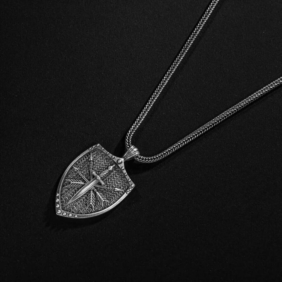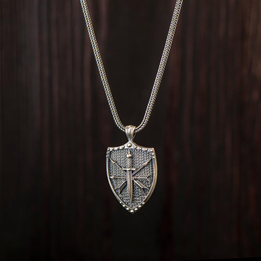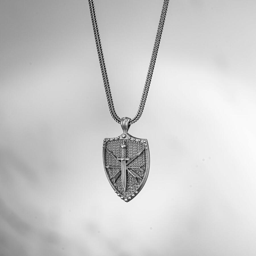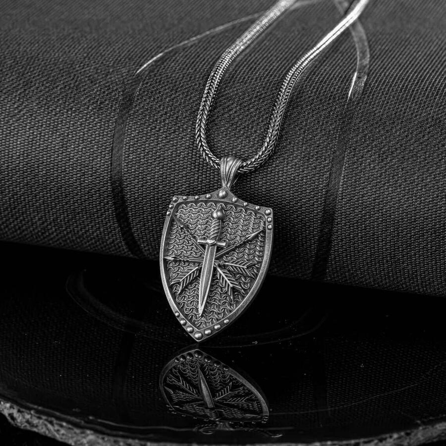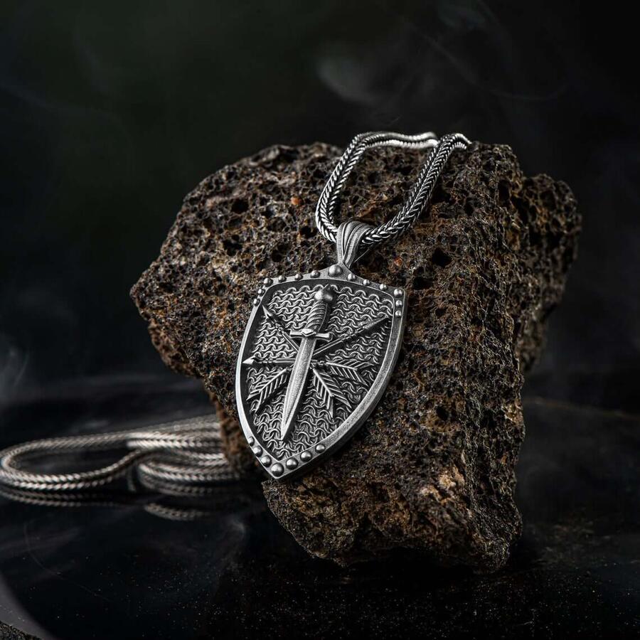 Viking Kılıç ve Kalkan Motifli 925 Ayar Gümüş Kolye
