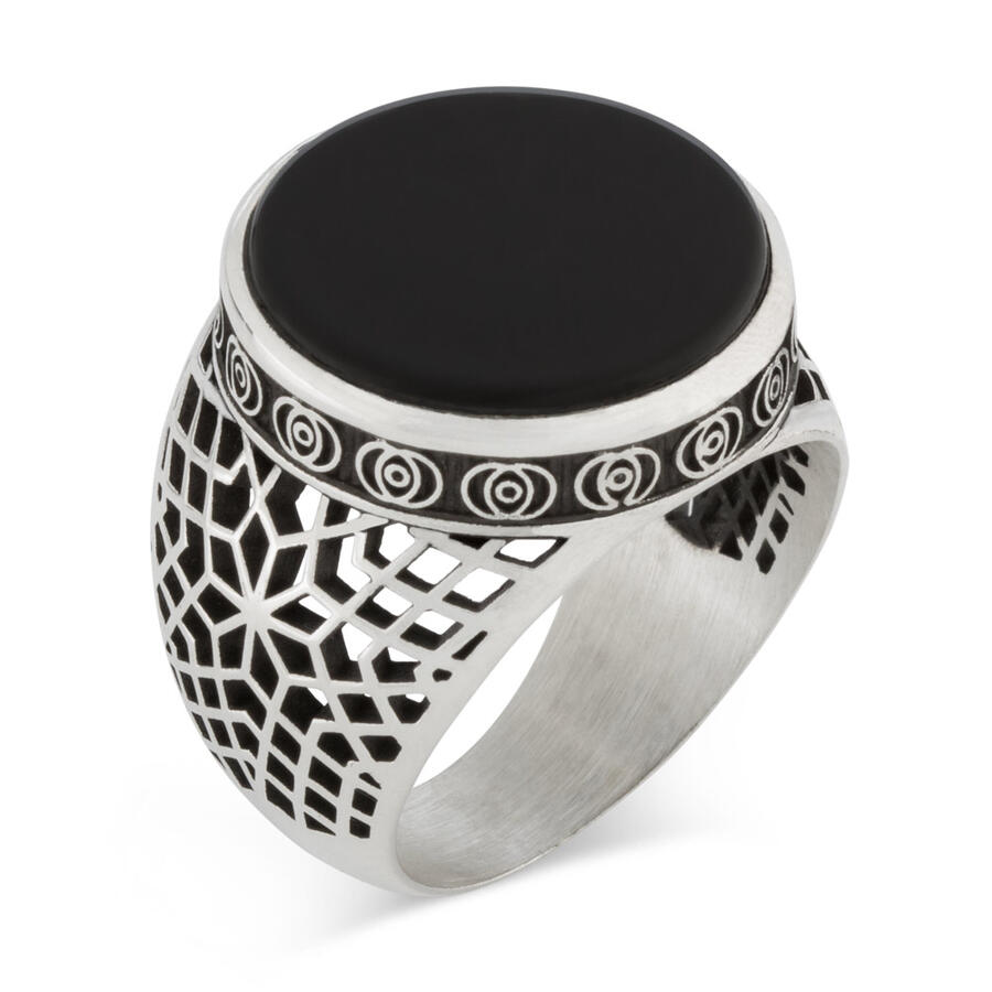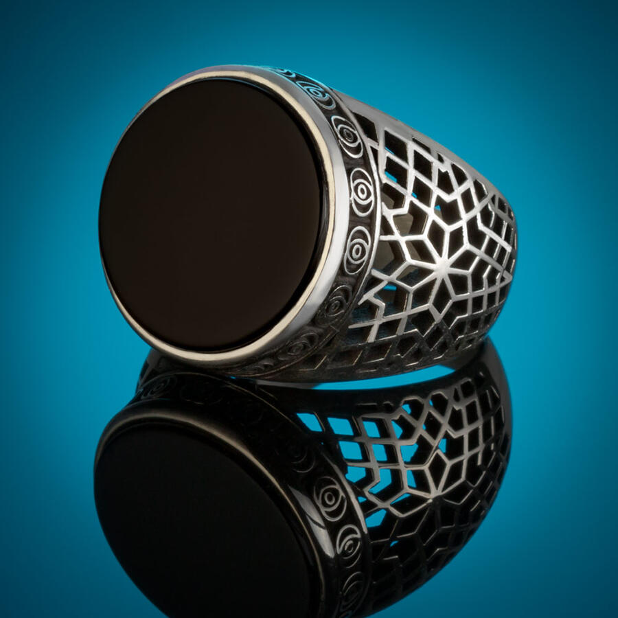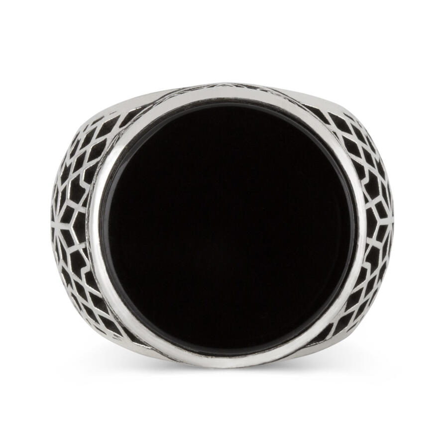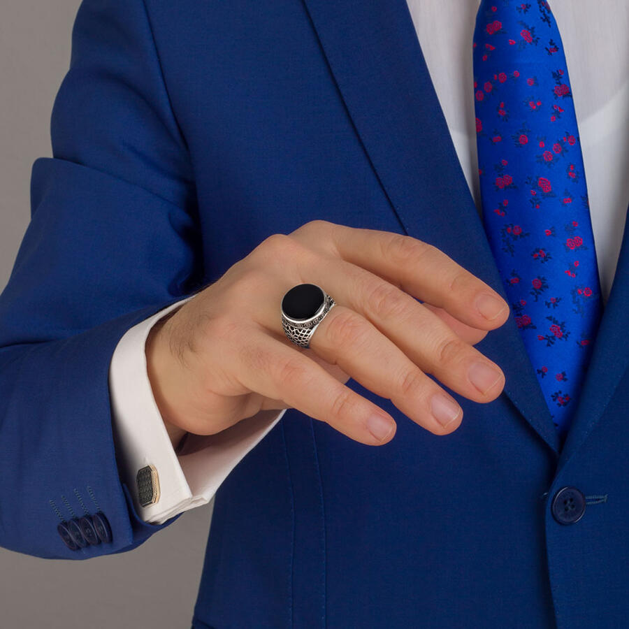 925 Ayar Gümüş Siyah Oniks Taşlı Erkek Yüzük