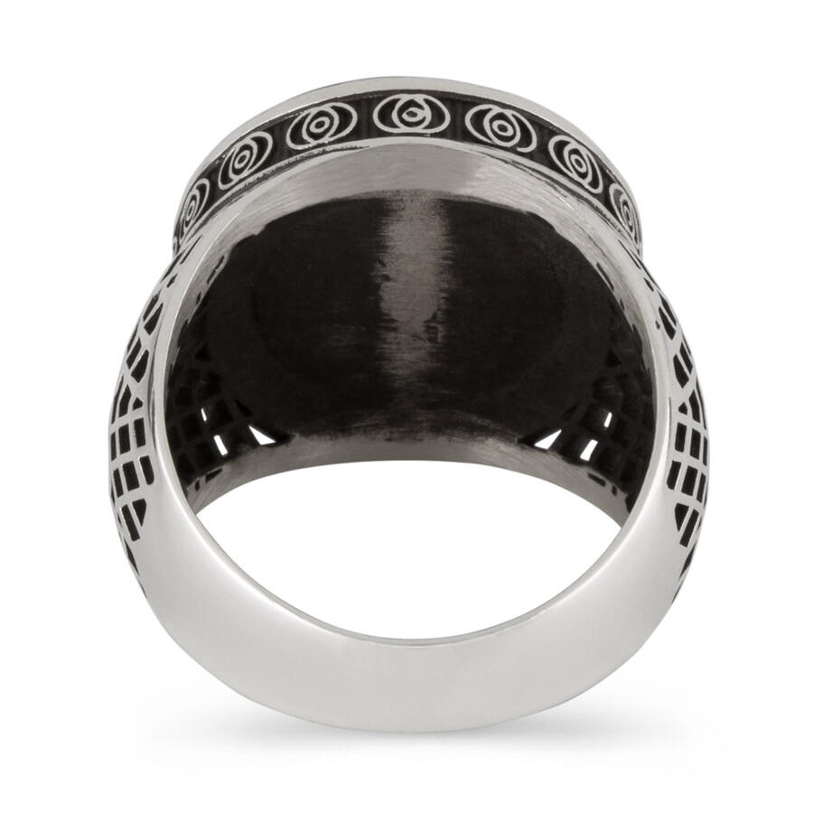 Kılıç Detaylı Siyah Oniks Taşlı Gümüş Yüzük