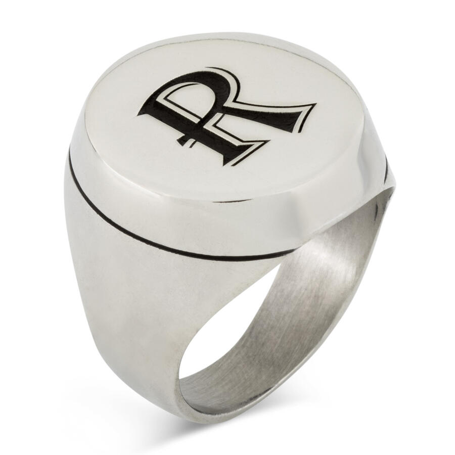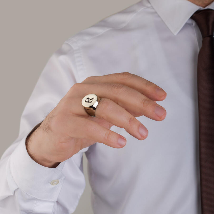 Yuvarlak Tasarım Sade Erkek Yüzük 925 Ayar Gümüş Kişiye Özel Harfli