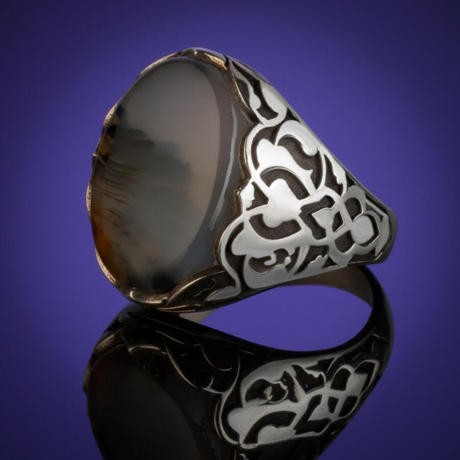 925 Sterling Silver Patterned Stone Silver Men's Ring Product Features