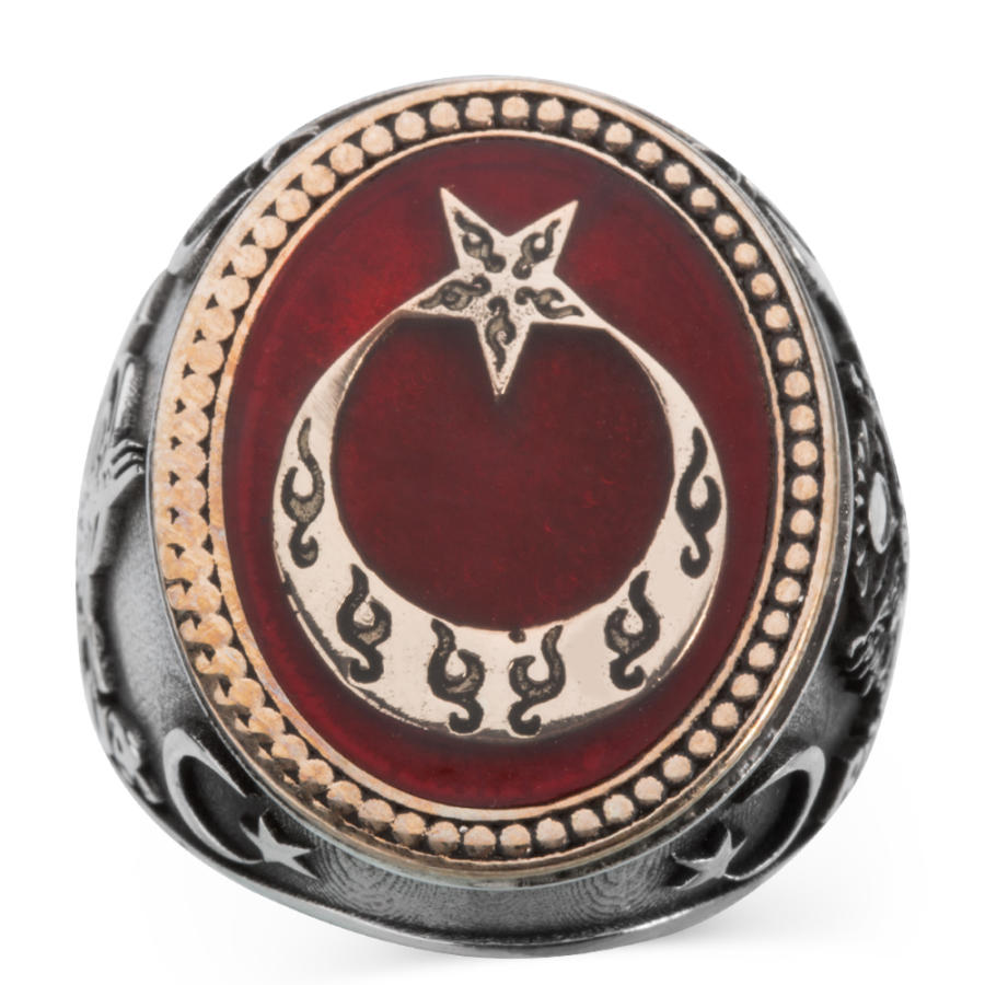 - Yüzük üzerinde kırmızı mine ile ay yıldız motifi bulunur.