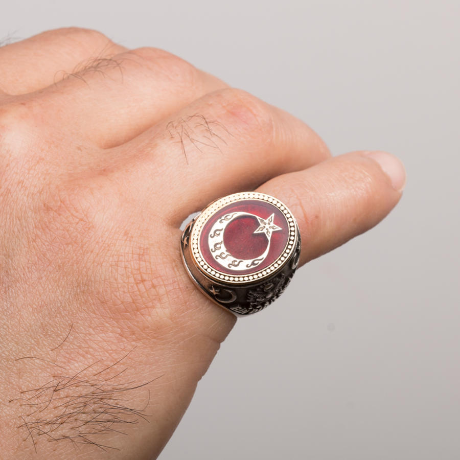 Milli değerlerine bağlı göğsünde bayrak sevgisi taşıyan erkekler için tasarlanan ay yıldız gümüş yüzükler farklı tasarımlarla karşınızda!