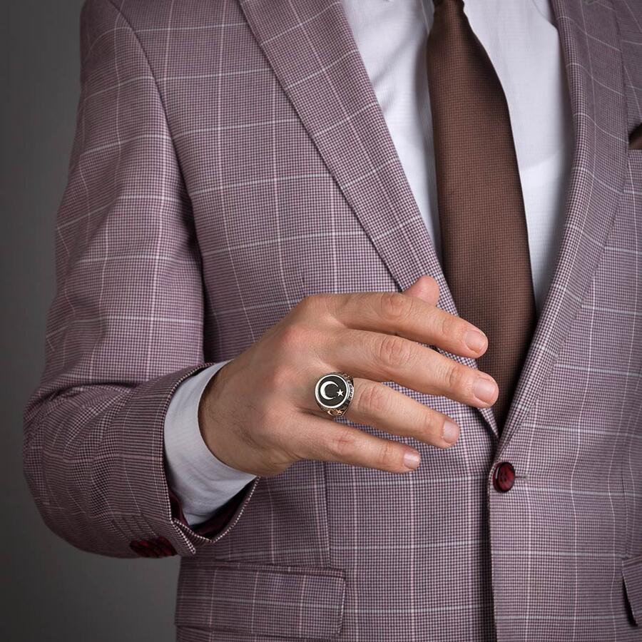 Kahramanlar Ay Yıldız Motifli Gümüş Yüzük