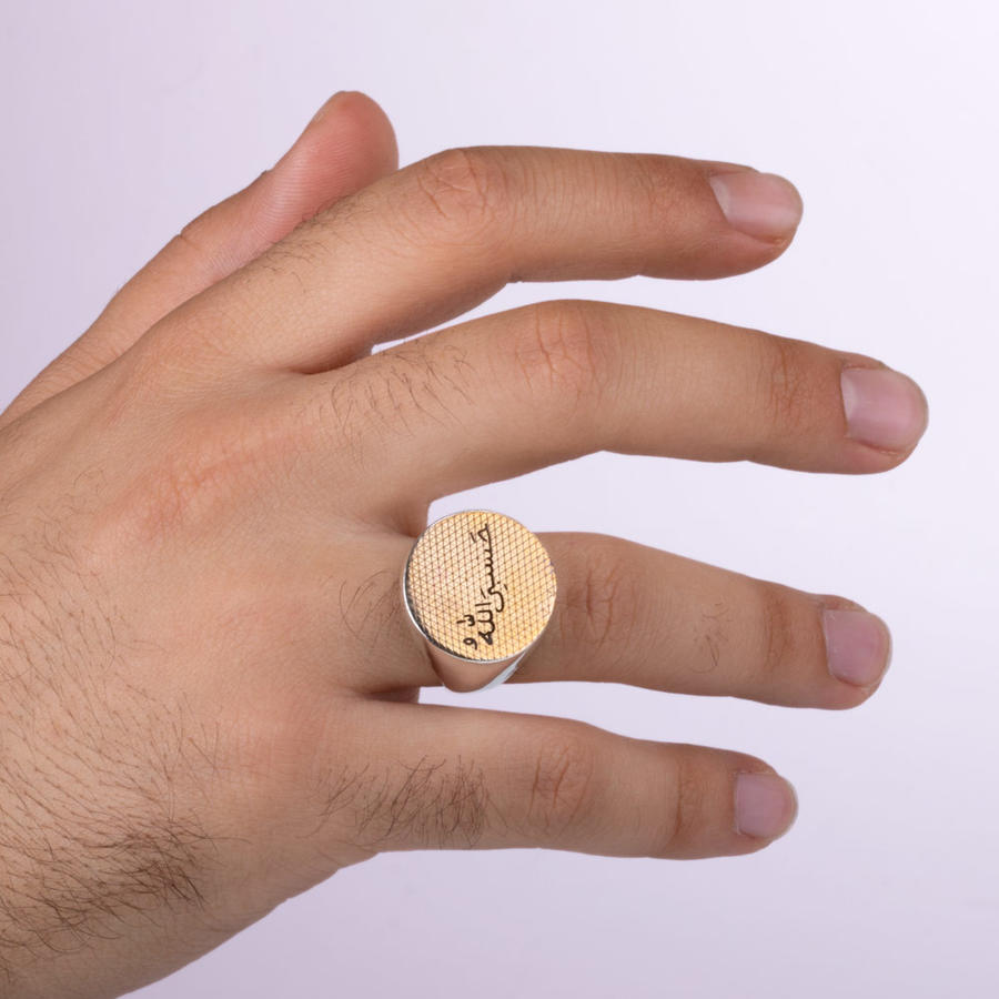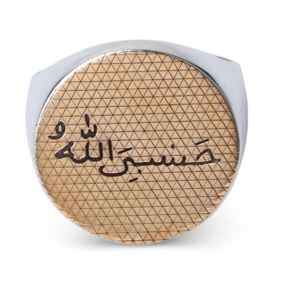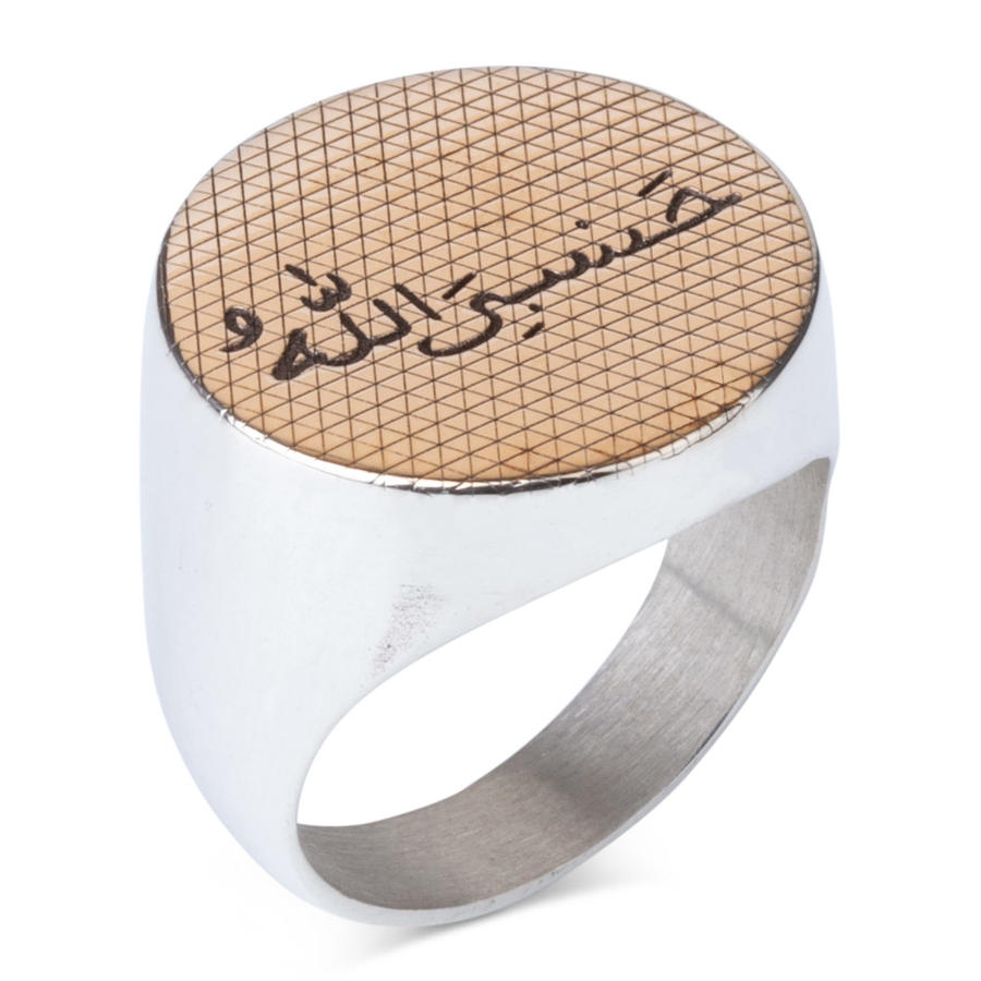 - Yüzük üzerinde Arapça "Hasbi Allah" (Allah Bana Yeter) yazmaktadır.