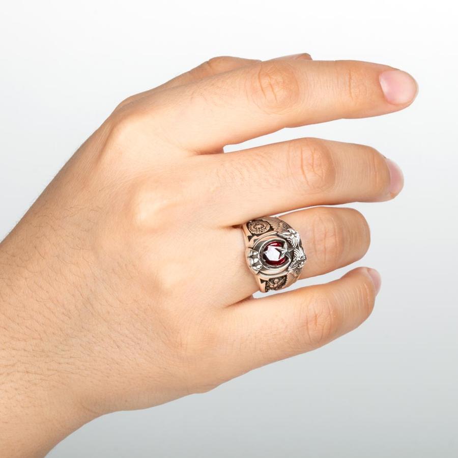 - Yüzük üzerindeki zirkon taşa ay ve yıldız motifleri işlenerek çift kartal başı ile birleştirilmiştir.
