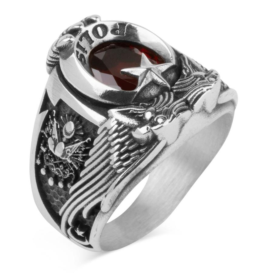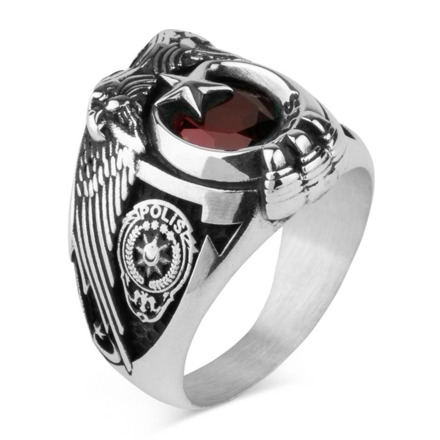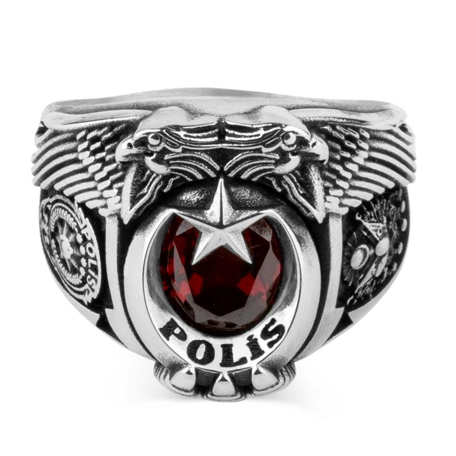 Polislik mesleği mensubu bayanlara özel hazırlanan bu Anı yüzüğü ile siz de gücü parmağınızda hissedeceksiniz! 925 ayar gümüş üretimli bu aksesuarda hakimiyet sembolü olan tek başlı kartal tasarımı kullanılmıştır. Yüzük yanlarında "Polis Arması" diğer yanında ise Osmanlı arması figürüne yer verilmiştir. Siz de hemen Anı Yüzük'e gelerek sipariş verin, mesleğinize özel olarak tasarlanan şık bir aksesuarın sahibi olun.
