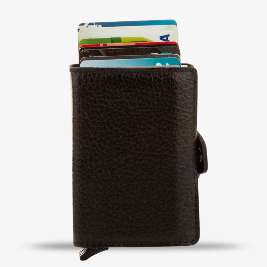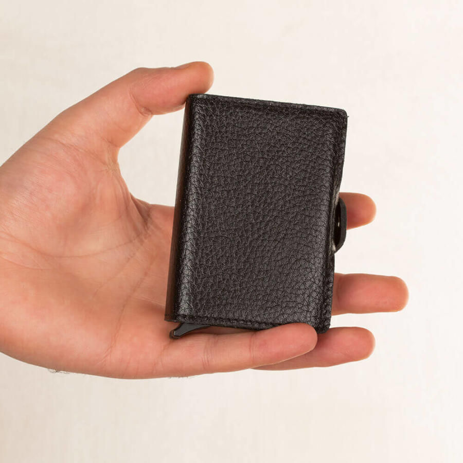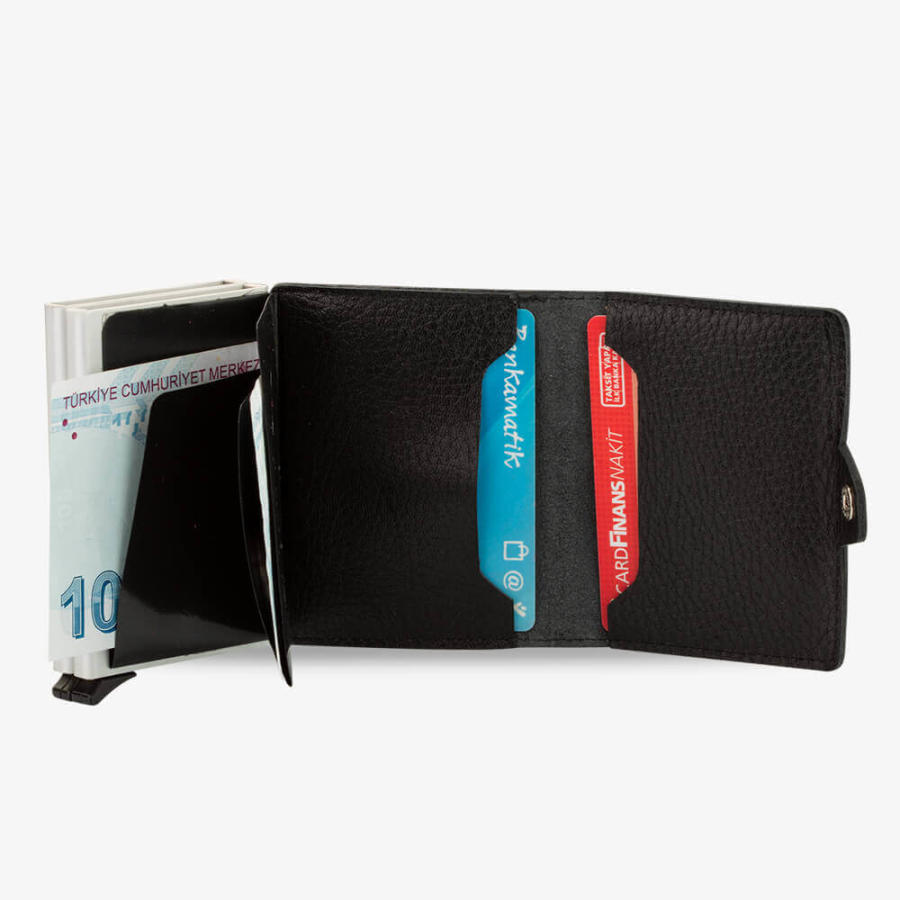 Cüzdan alırken kullanışlı olmasını ön planda tutanlar için özel olarak tasarlanan ve kartlık cüzdan modelleri arasında trend haline gelen bu çift mekanizmalı kartlık ile hayat çok daha kolay! Günlük hayatta yanında çok sayıda kredi kartı taşıyan kişilere özel olarak tasarlanan bu sade tasarımlı erkek kartlık yüzde yüz hakiki deri üretimli olup unisex tasarımlanmıştır. Çelik kartlık altında bulunan pop up kilidi ile kartlarınız otomatik olarak cüzdandan çıkar, bu mekanizma sayesinde aradığınız kartı kolaylıkla bulabilirsiniz. Siz de hemen sipariş vererek bu şık kartlığın sahibi olabilirsiniz.