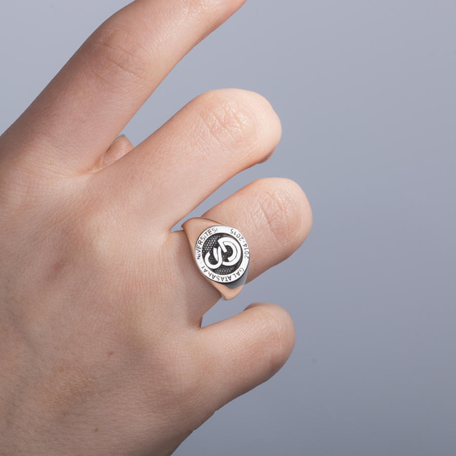 Galatasaray Üniversitesi 2016 mezunları için tasarladığımız 925 ayar gümüş taşsız okul yüzüğüne daha yakından bakın! Yüzük sade tasarımla üretilmiş olup üzerinde Galatasaray Üniversitesi logosuna yer verilmiştir. Yaklaşık 14 gram ağırlığında olan bu yüzüğü siz de kendi döneminize özel olarak sipariş verebilir, yüzük halkası içine yazı yazdırarak ürünü size özel hale getirebilirsiniz.
