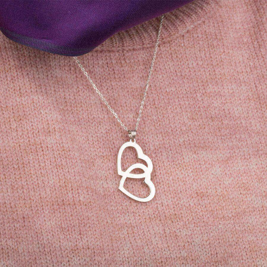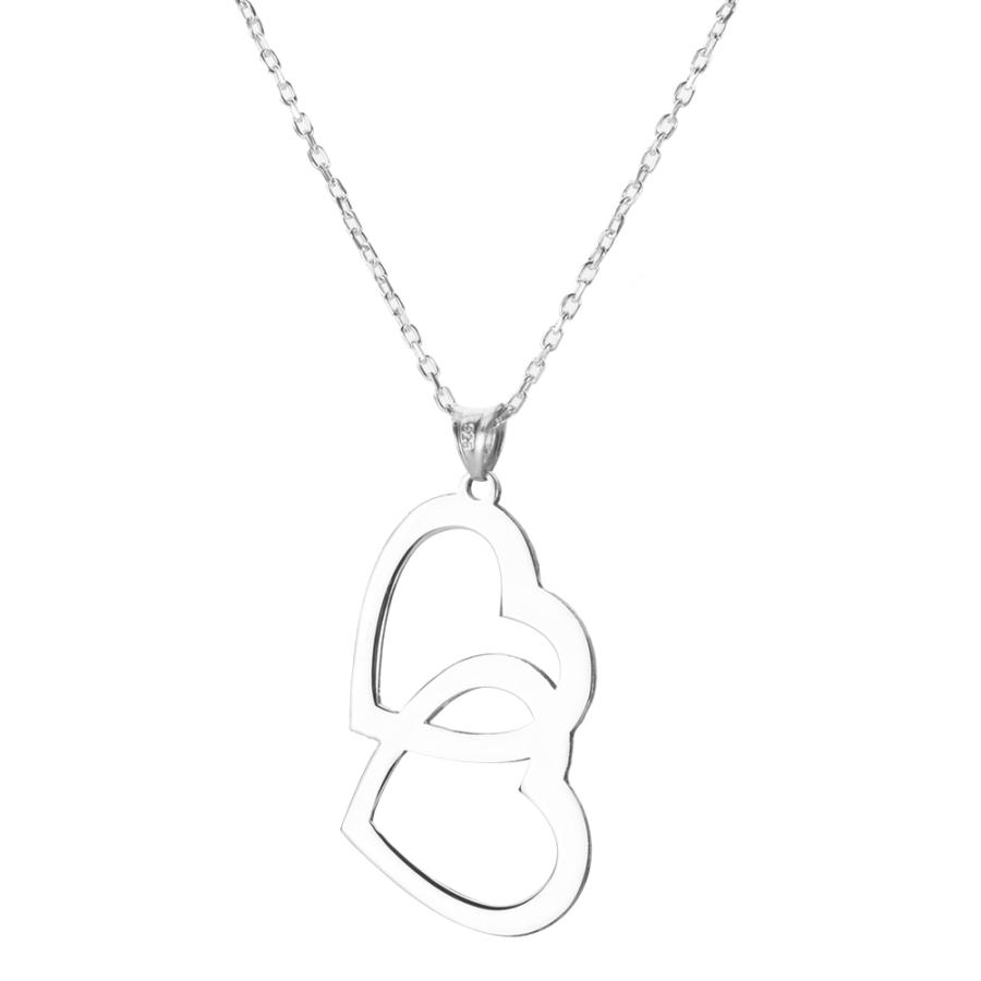 Aşkın en güzel sembolü kalp figürü iç içe geçen çift kalp formuyla tasarlanmış olup sevgili kolyeleri arasında özel bir yere sahiptir.