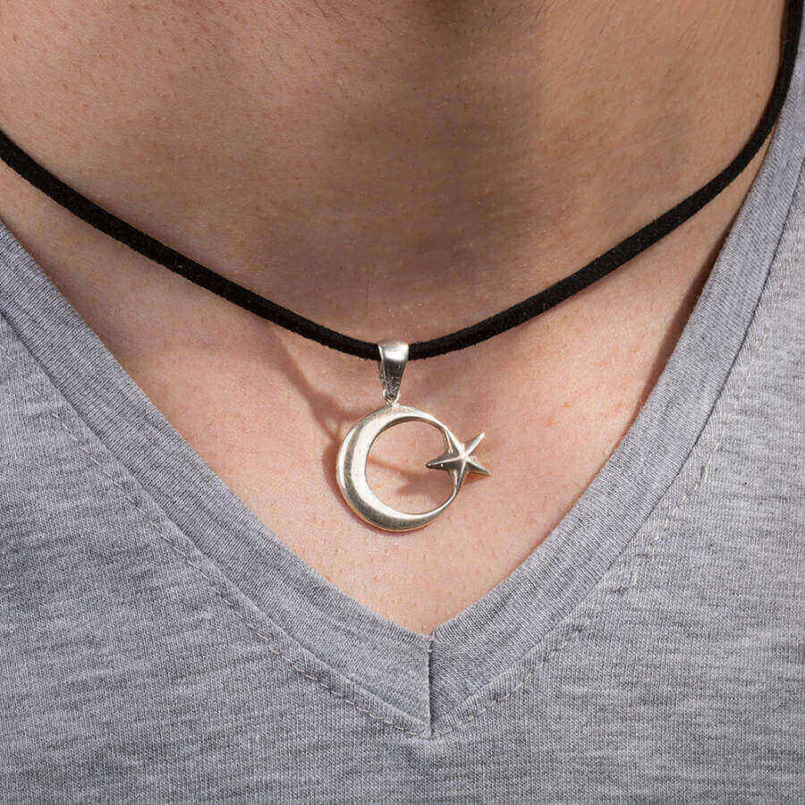 Türk bayrağının şıklığını boynunda taşımak isteyen erkekler için tasarlanan 925 ayar gümüş sade tasarım Ay Yıldız kolye ile siz de milli değerlerinize olan bağlılığınızı gösterebilir, Türk olmanın gururunu her daim yaşayabilirsiniz. Yaklaşık 4 gram ağırlığında olan bu aksesuar 50 cm deri iple gönderilmektedir. Siz de hemen sipariş verin, ister sevdiklerinize isterseniz de kendiniz için uygun fiyat ve ücretsiz kargo imkanıyla şık bir aksesuarın sahibi olun.