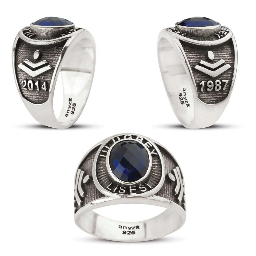 İstek Vakfı Uluğbey Liseleri 2014 mezunları için hazırlanmış 925 ayar gümüş mavi zirkon taşlı yüzük.