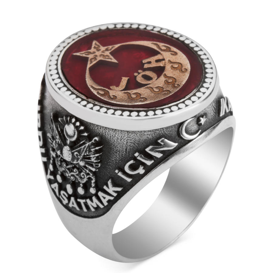 "Kahramanlar can verir, yurdu yaşatmak için" yazısıyla çevrelenmiş bu 925 ayar gümüş Jandarma Özel Harekat yüzüğü; güzel vatanımız ve Türk bayrağımızın anlamı uğruna canlarını hiçe sayarak ortaya koyan yiğitlerimize ithaf edilerek tasarlanmıştır. Üzerinde kırmızı yüzük minesi bulunan yüzük, şehitlerimizin kanıyla renklenen bayrağımızın ay ve yıldız motifiyle süslenmiş, üzerine JÖH yazılmıştır. Yüzüğün bir yanına "Kahramanlar can verir" yazısı ve Jandarma Özel Harekat logosu bulunurken, diğer yanında "Yurdu yaşatmak için" yazısı ve Osmanlı arması bulunmaktadır. Yüzük yaklaşık 17.5 gr olup, ömür boyu garantilidir. Dilerseniz yüzük halkası içine istediğinizi yazdırabilir, yüzüğü kendinize özel hale dönüştürebilirsiniz.