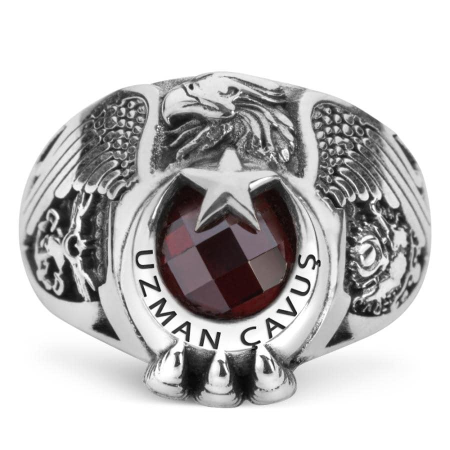 Mesleğinize olan sadakat ve bağlılığınızı taşıdığınız aksesuarlarla da gösterin! Kara Kuvvetlerine bağlı olarak görev yapan kahraman Uzman çavuşlar için özel olarak tasarlanan geleneksel kartal başlı tasarımlı bu aksesuarı daha yakından incelemeye ne dersiniz? Hakimiyeti ve gücü temsil eden kartal motifi ay yıldız tasarımla birleştirilerek zirkon taş ile zenginleştirilmiştir. Yüzük yanlarında Türk Silahlı Kuvvetleri ve Osmanlı Armasına yer verilmiştir. Yüzük hilal içine ise lazer yöntemiyle "Uzman Çavuş" yazısı işlenmiştir. Siz de hemen sipariş verin, sadece Anı yüzüğün sunduğu ömür boyu garanti imkanıyla kusursuz bir aksesuarın sahibi olun.