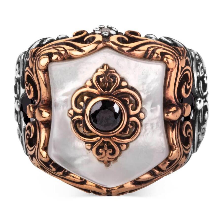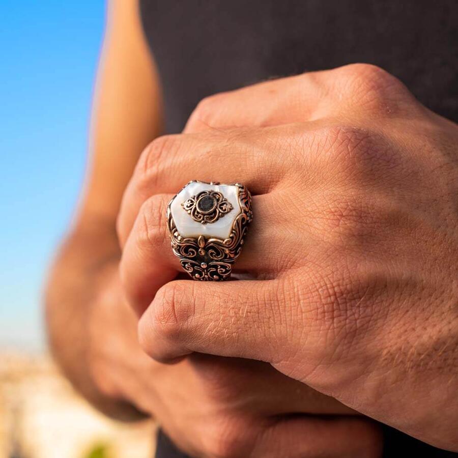 Yüzük üzerinde beyaz sedef taşı yer almaktadır.